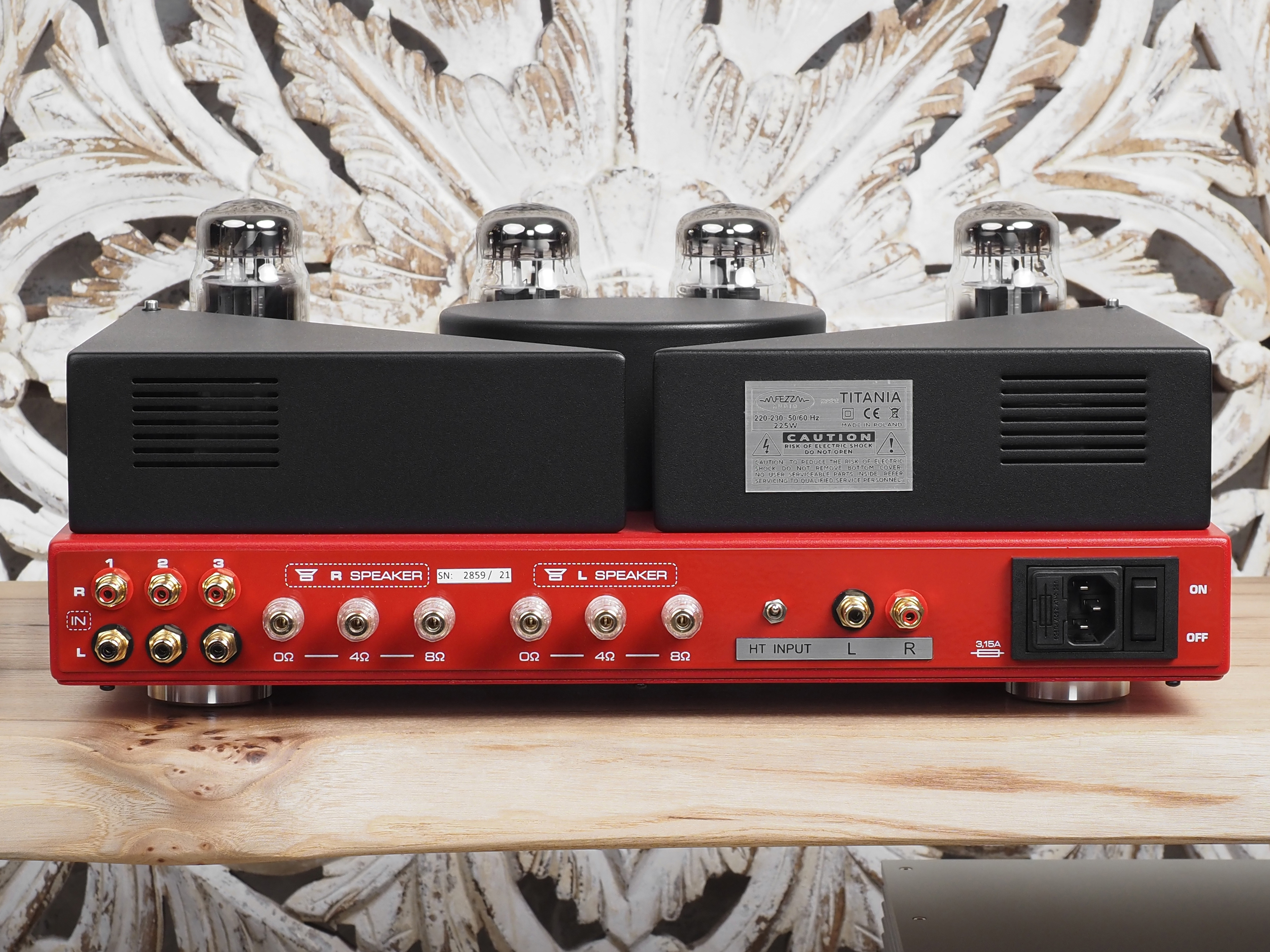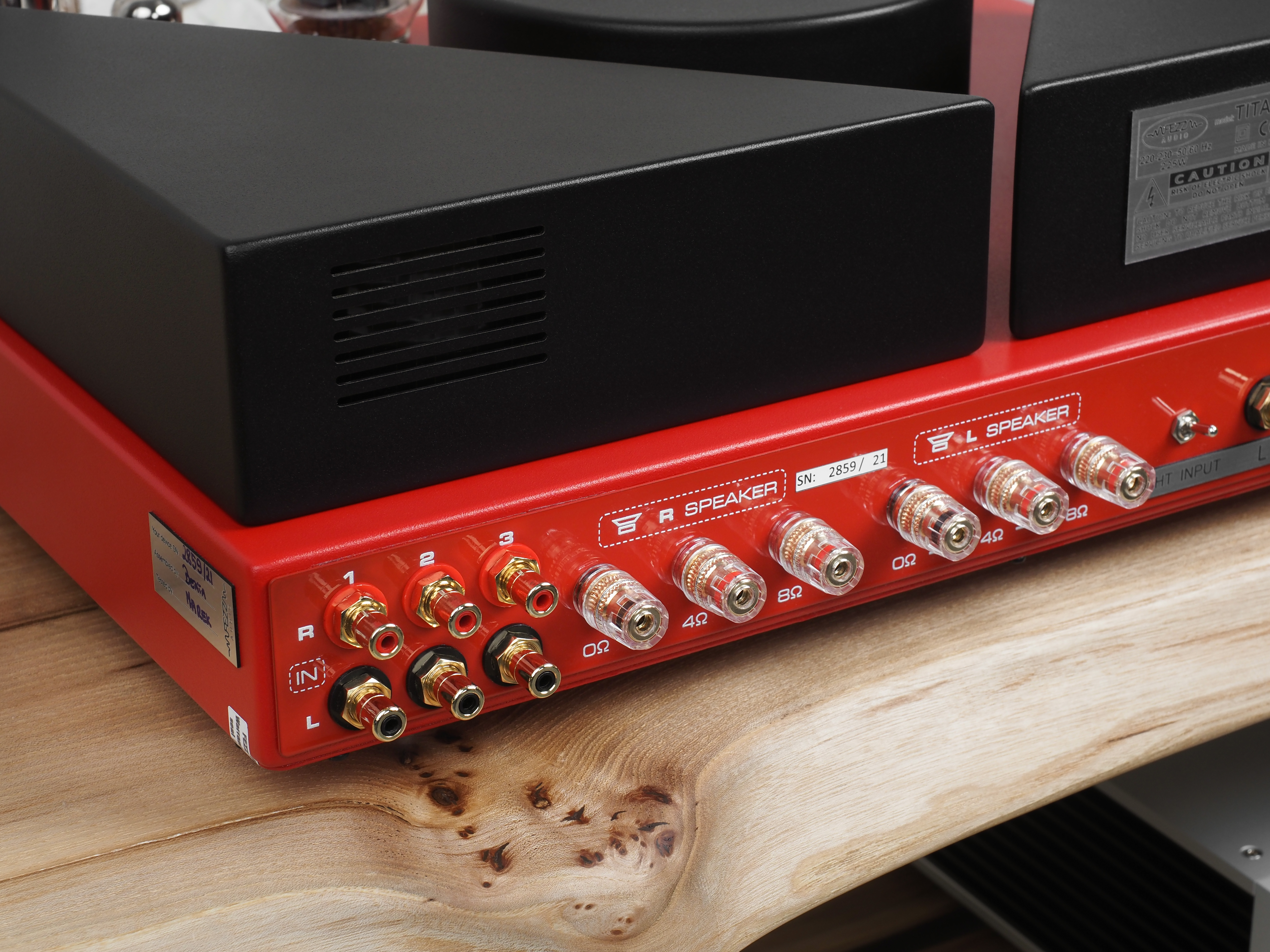 Защитный кожух для ламп легко устанавливается и надежно закрепляется специальными винтами, отверстия с резьбой для которых мы видели чуть выше. С установленным кожухом Fezz Audio Titania выглядит несколько менее эффектно, зато за сохранность ламп в таком случае можно практически не беспокоиться.