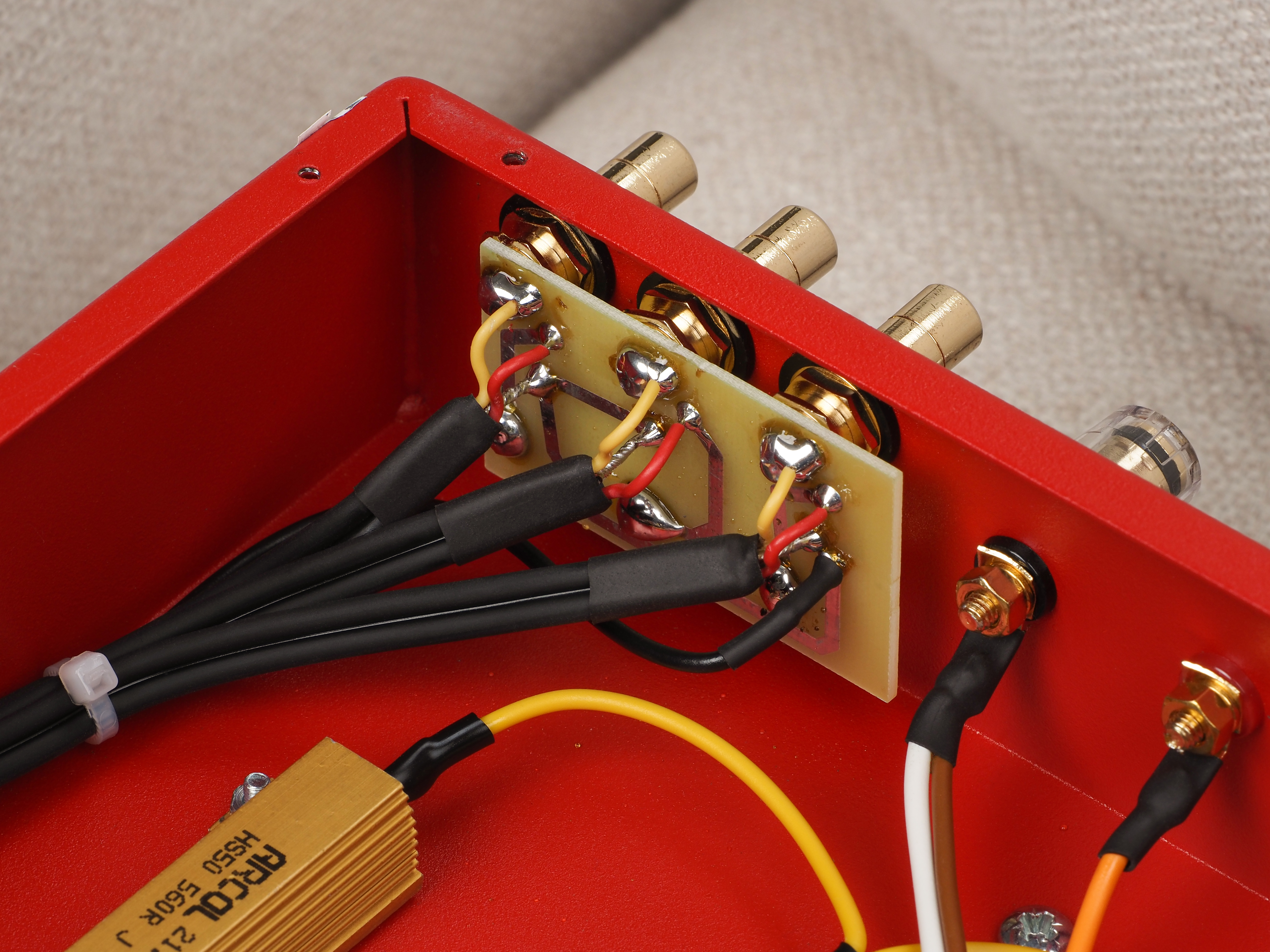 Без навесного монтажа, как можно заметить по резисторам на входе для домашнего кинотеатра, не обошлось. Бытует мнение, что в ряде случаев он даже является предпочтительным.