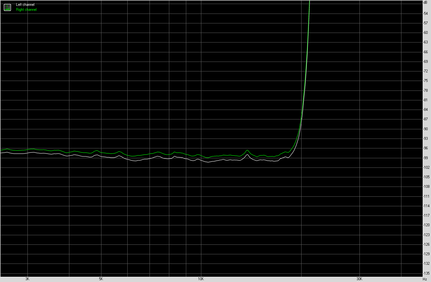 При этом разница между оценками «очень хорошо» и «отлично», например, зачастую составляет доли процента — на слух ее уловить нереально. При этом измерения и графики могут помочь нам увидеть действительно серьезные проблемы: слишком высокий уровень искажений, заметную неравномерность АЧХ и так далее. В остальном стоит полагаться на собственные впечатления — в конце концов, если звучание приносит радость, «циферки» отходят на второй план. Измерения проводились с помощью АЦП E1DA Cosmos при проводном подключении к источнику в режиме 24 бит/96 кГц, использовался балансный выход. Все показатели на уровне «отлично», чего и следовало ожидать.
