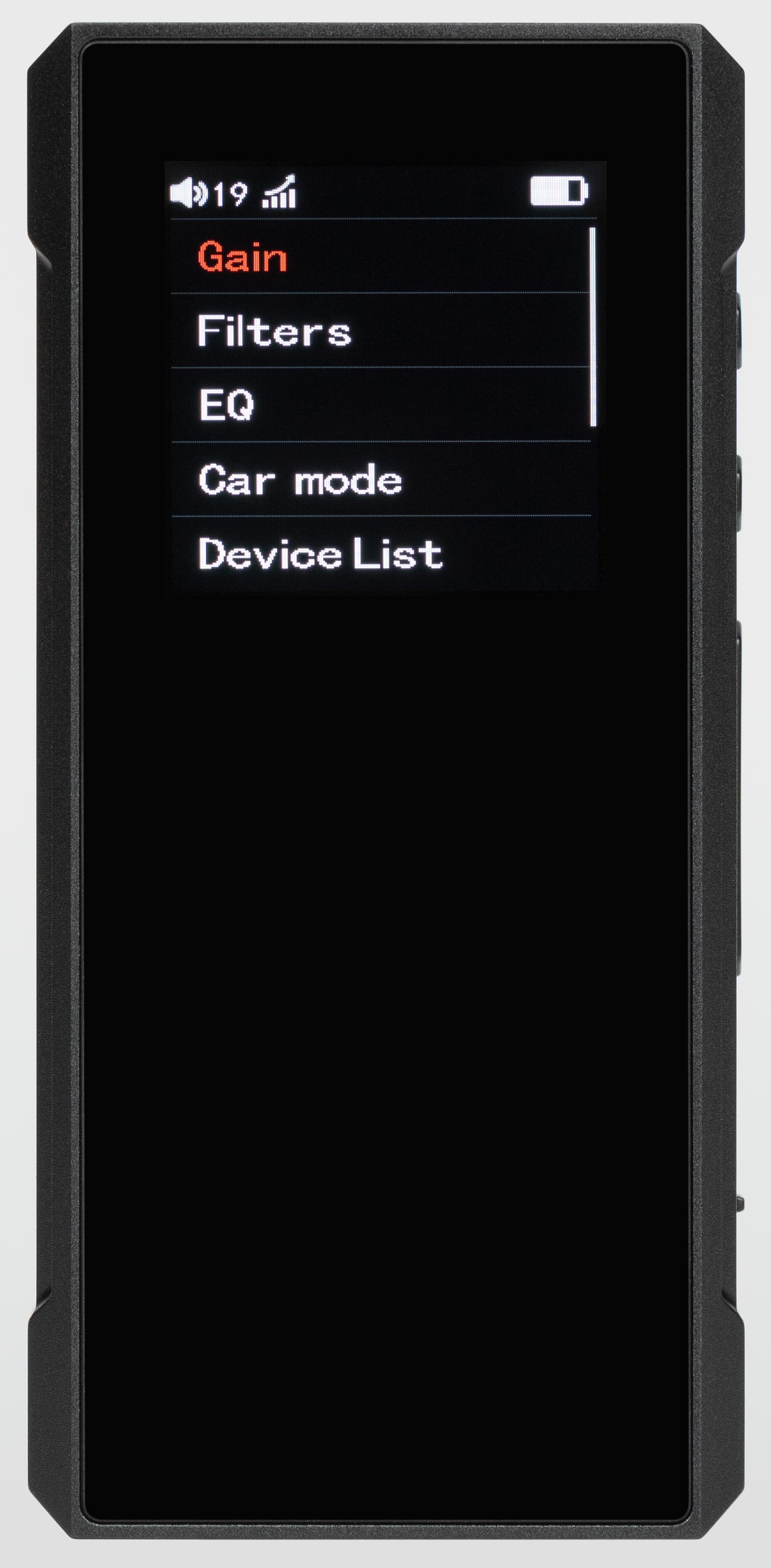 Большой 1,3-дюймовый дисплей отображает всю необходимую информацию: громкость, уровень заряда, используемый кодек, формат воспроизводимого файла или потока... Он же отвечает за отображение меню, шрифты в котором более-менее читаемы, но все же меловаты и ощутимо «пикселят». Необходимость большого экрана в данном случае вообще под вопросом — в плане информативности он не так-то и далеко ушел от маленького и монохромного, который мы видели в BTR5. Но обновленные размеры корпуса позволили поставить что-то посимпатичнее — почему бы и нет.