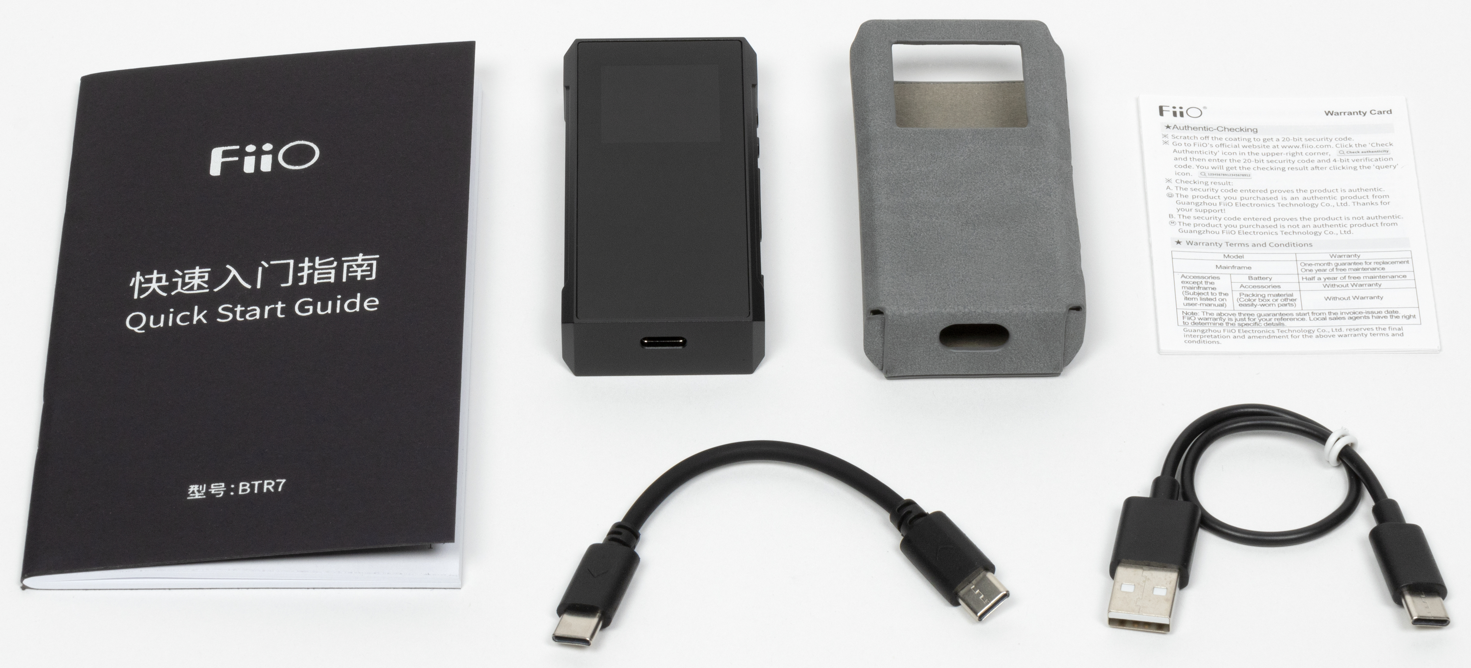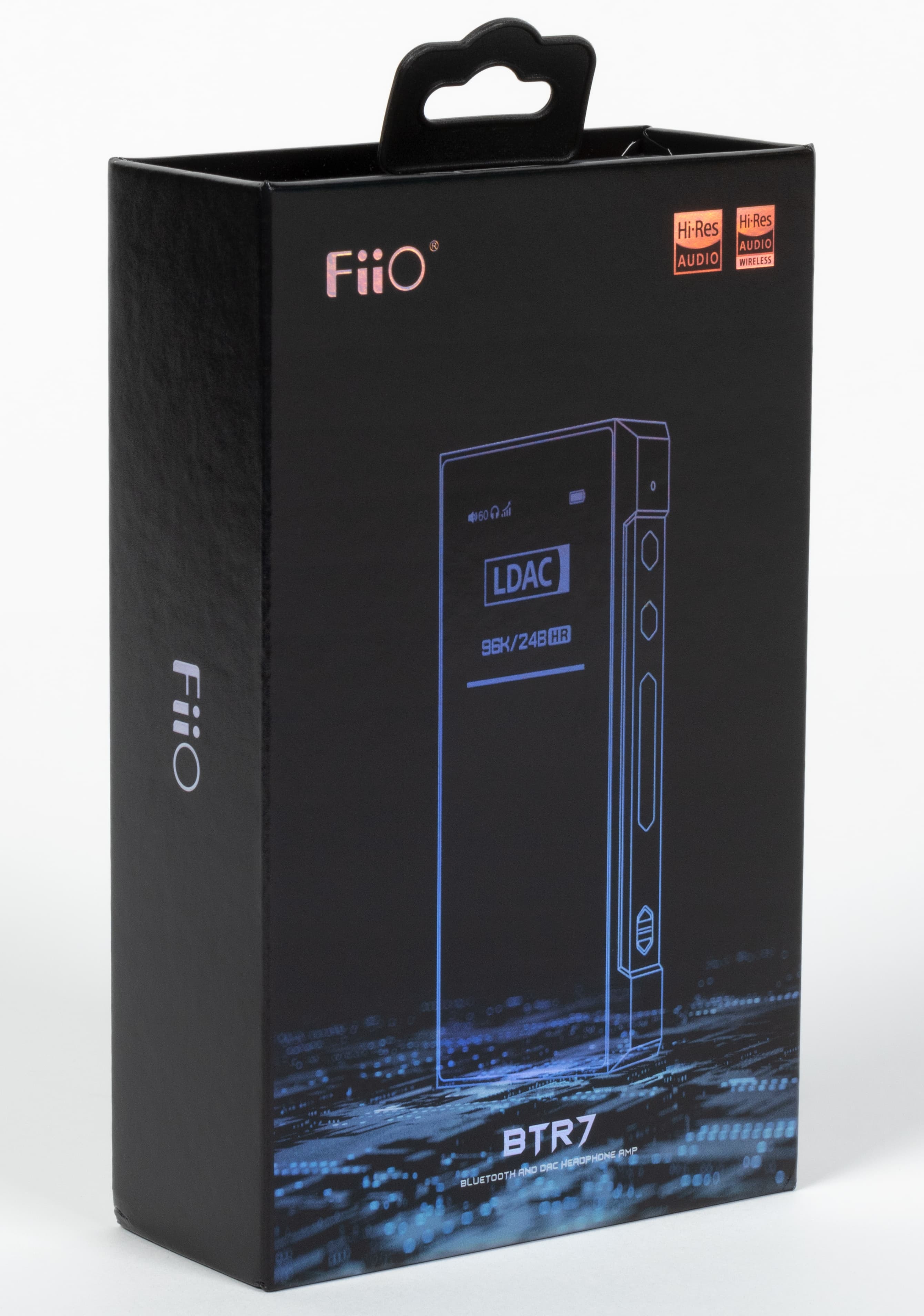 Поставляется FiiO BTR7 в лаконичной, но эффектной черной коробке с откидывающейся вбок крышкой, удерживаемой в закрытом положении с помощью магнита. Внутри все элементы комплектации помещены в собственные коробочки, непосредственно устройство удерживается на своем месте с помощью ложемента из пенистого материала.