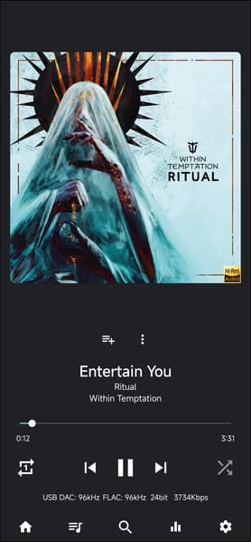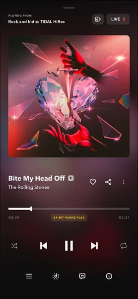 При подключении к Android-смартфону при помощи кабеля FiiO BTR7 корректно работает с плеерами, поддерживающими режим Bit-perfect, в нашем случае — USB Audio Player. Все форматы корректно воспроизводятся, в том числе — разнообразные «хайрезы». Приложение Tidal тоже сравнительно давно научилось взаимодействовать с внешними ЦАПами, но по-прежнему работает не так стабильно, как хотелось бы. Но тут уж вопросы не к тестируемому устройству, а к разработчикам Tidal.