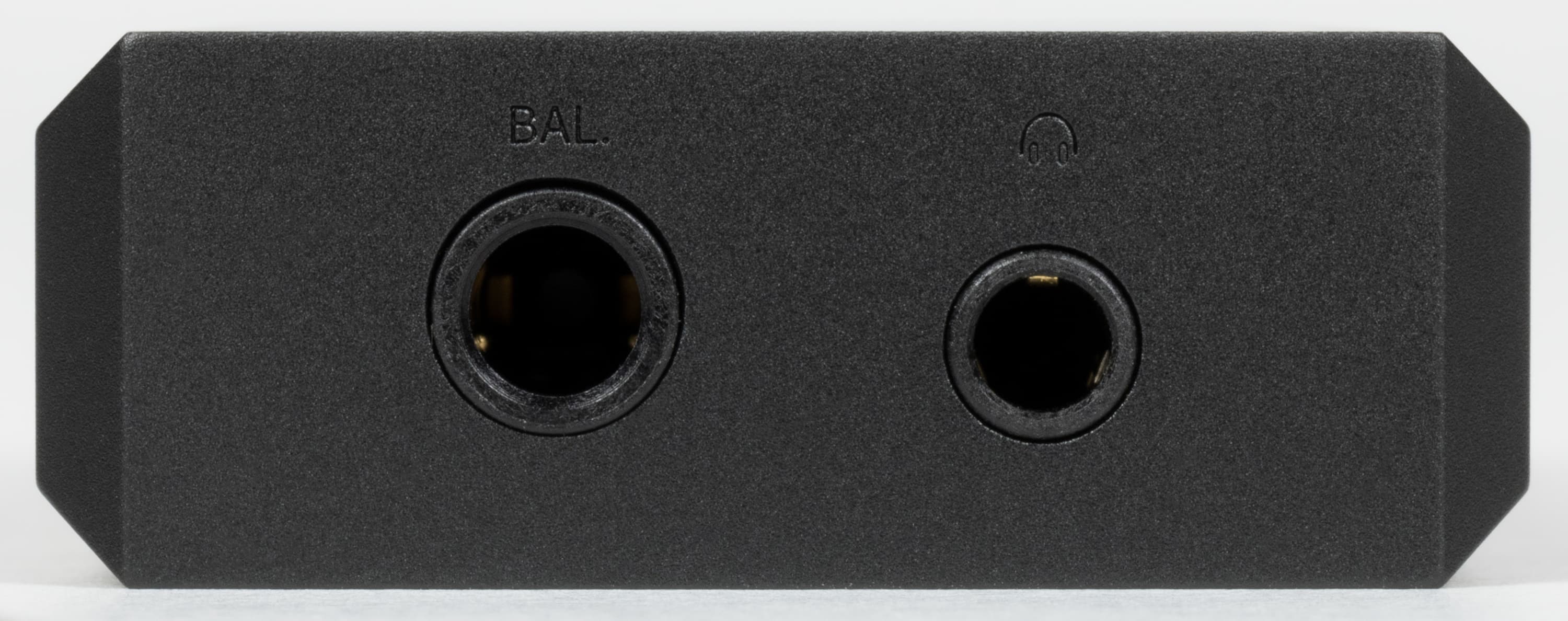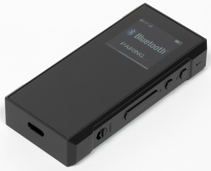 Для подключения наушников предусмотрены два разъема в верхнем торце корпуса устройства: балансный Pentaconn 4,4 мм, плюс небалансный миниджек 3,5 мм. На другом конце размещен порт USB Type C для проводного подключения и зарядки.