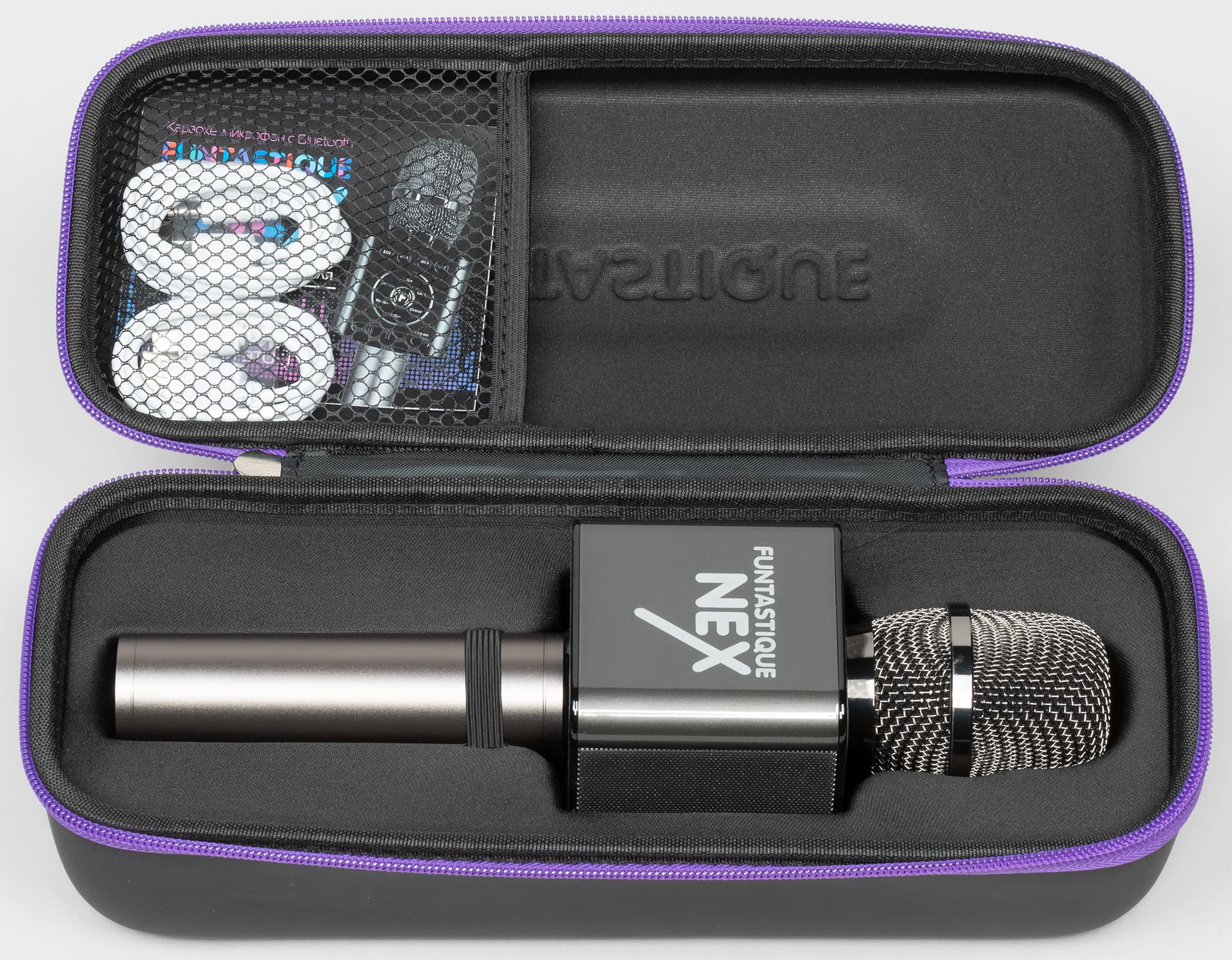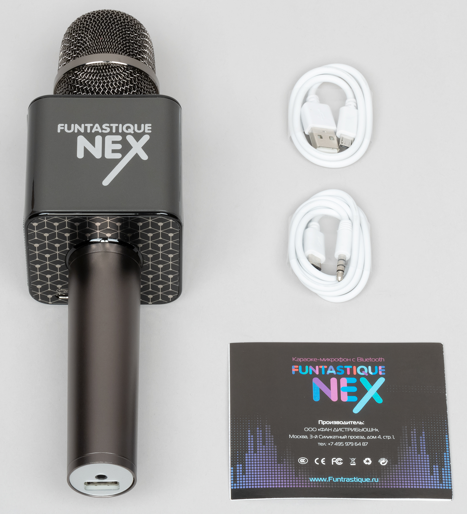 Возвращаться к тестированию этого класса устройств мы не планировали, так как сильно сомневались в способности других его представителей порадовать оригинальными и интересными результатами тестов. Немного развеял эти сомнения микрофон под названием, образованным смешением двух слов: fantastique (фантастический) и fun (веселье). Производитель называет свой Funtastique Nex премиальным Bluetooth-микрофоном и анонсирует целый ряд интересных особенностей — от кейса для переноски в комплекте до встроенного FM-передатчика. При этом и стоит Funtastique Nex почти в два раза больше, чем герой прошлого обзора. В общем, бюджетное устройство этого формата у нас уже было, теперь посмотрим на «премиальное».