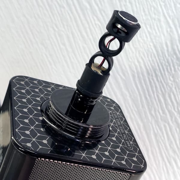 Электретный микрофон внутри смонтирован на силиконовом держателе, обеспечивающем его виброразвязку с корпусом. На капсуле нет никаких маркировок, но и без них несложно догадаться, что серьезного уровня качества передачи голоса он обеспечить не может. Примерно с тем же успехом можно петь в среднебюджетную игровую гарнитуру, например.