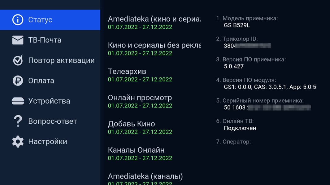 Хорошее известие: в предоставленном для тестирования приемнике присутствуют ключи, дающие доступ к спутниковому ТВ и сервисам. Можно даже увидеть оставшийся срок действия этих ключей: полгода с момента первого включения приставки.
