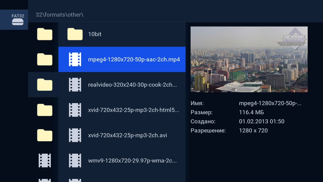 Нет, не так. Рассматриваемая приставка — это еще и плеер, который способен воспроизводить файлы с локальных USB носителей. А это означает необходимость проверки нашего устройства на способность отображения видеоконтента разных форматов, размеров и частот кадров.