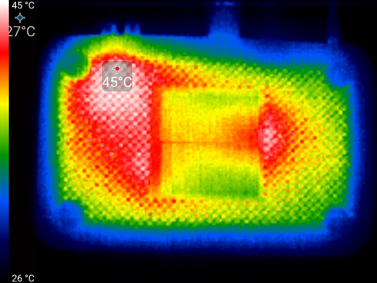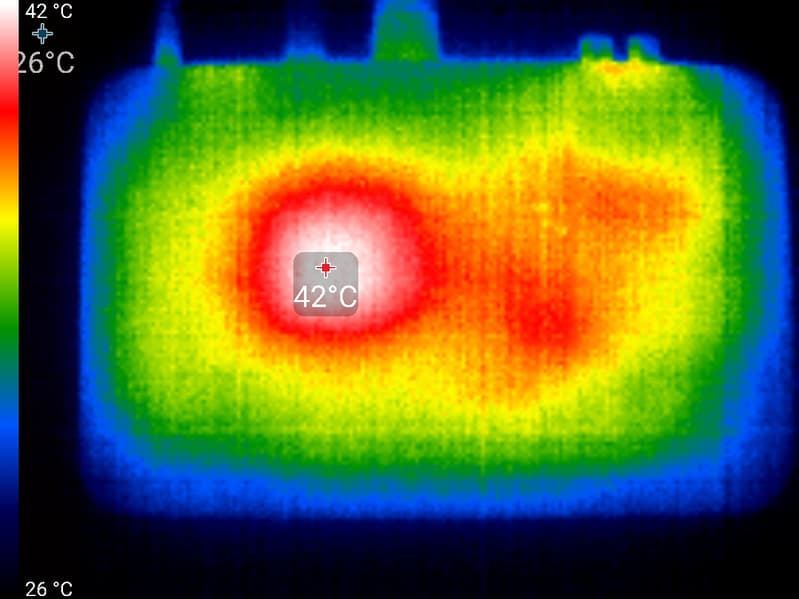 Прежде всего закроем вопрос, касающийся отказоустойчивости прибора. Один из наглядных показателей — это температурная карта, показывающая, насколько устройство склонно к перегреву.