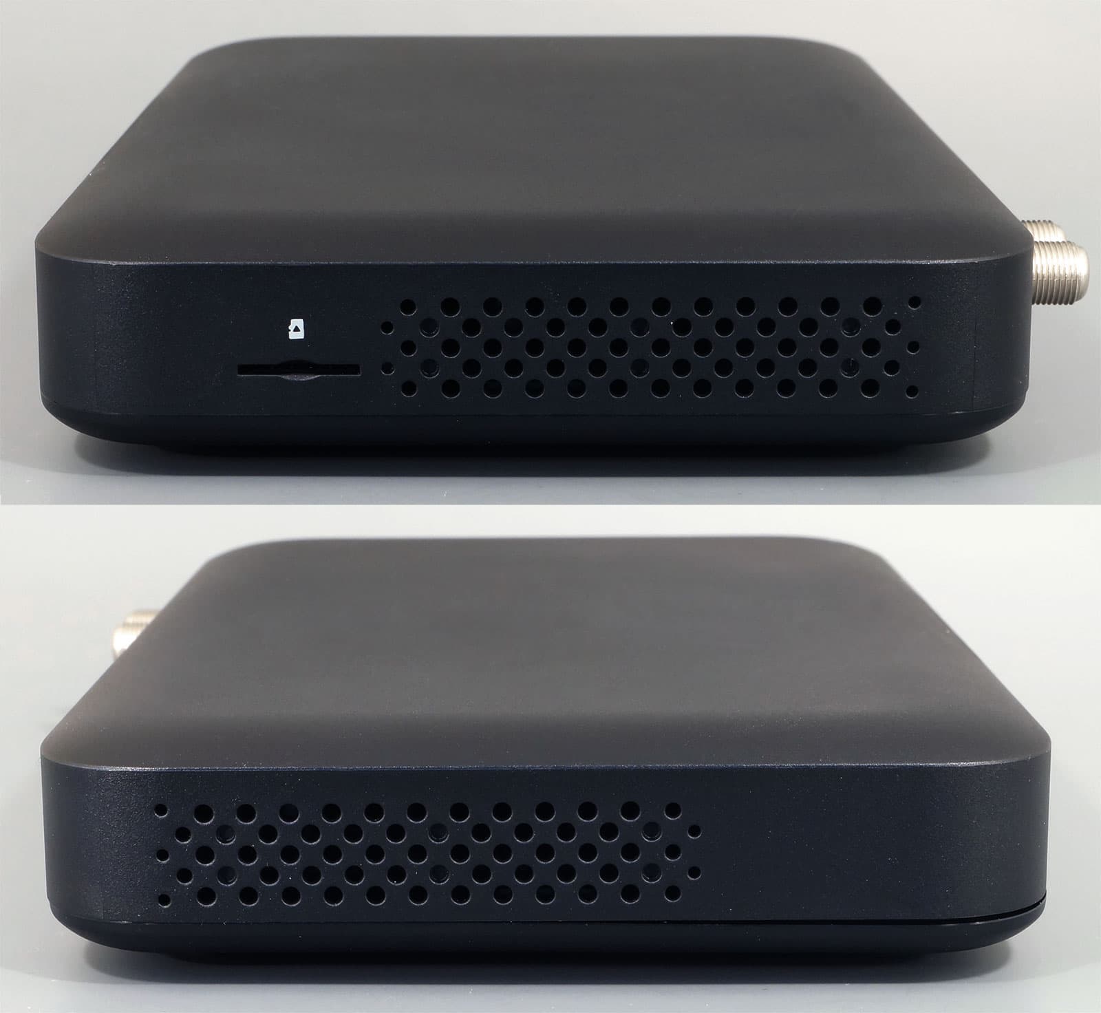 Время экспериментов с дизайном современных ТВ-приставок, кажется, ушло. Производители давно отказались от вычурных форм. Теперь приставка — это скромная коробочка черного (как правило) цвета. И да, отказ от глянца — это большой шаг и серьезное решение, за которое производителям требуется сказать отдельное спасибо. Ни бросающейся в глаза пыли, ни вечных отпечатков пальцев.