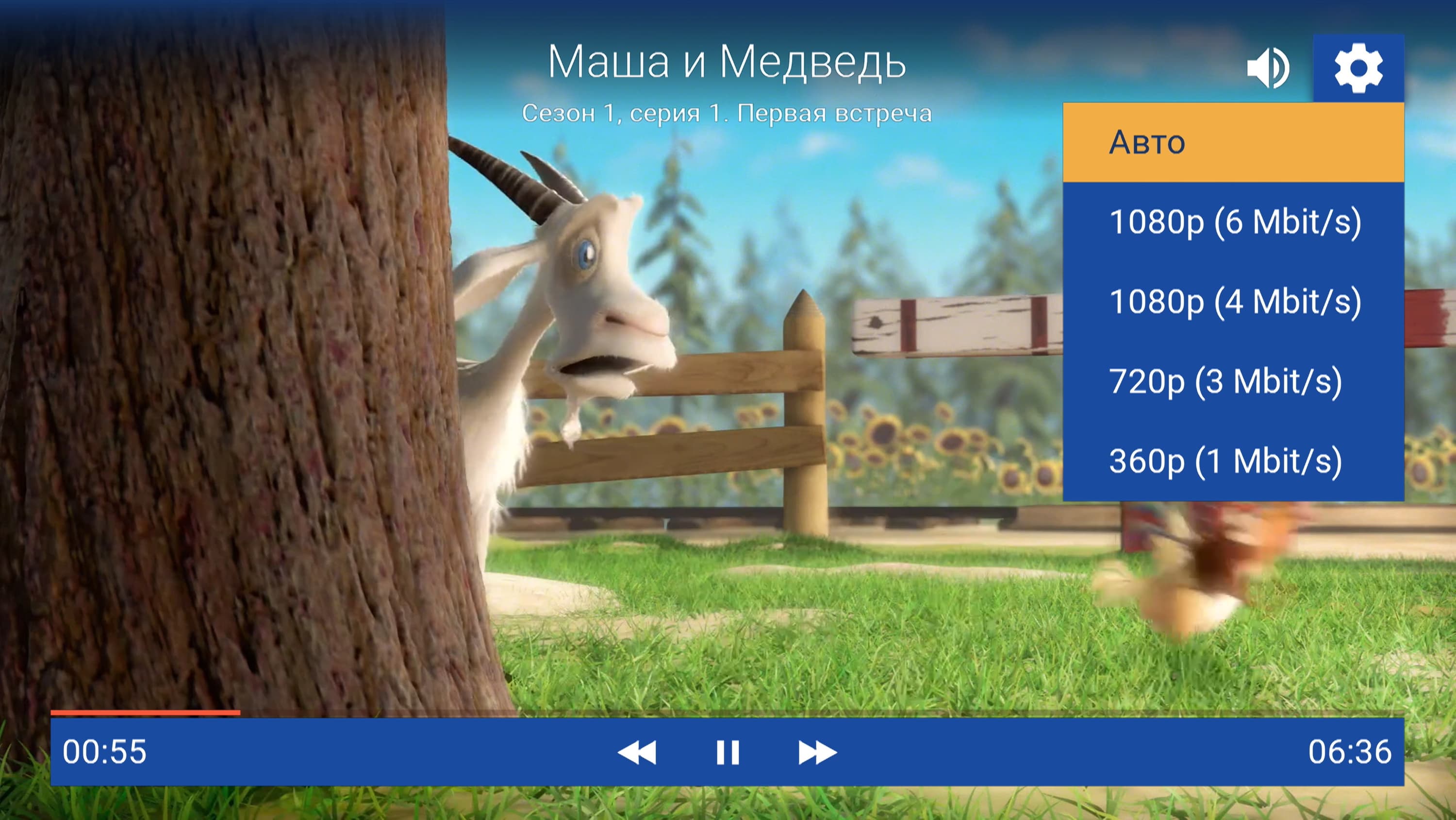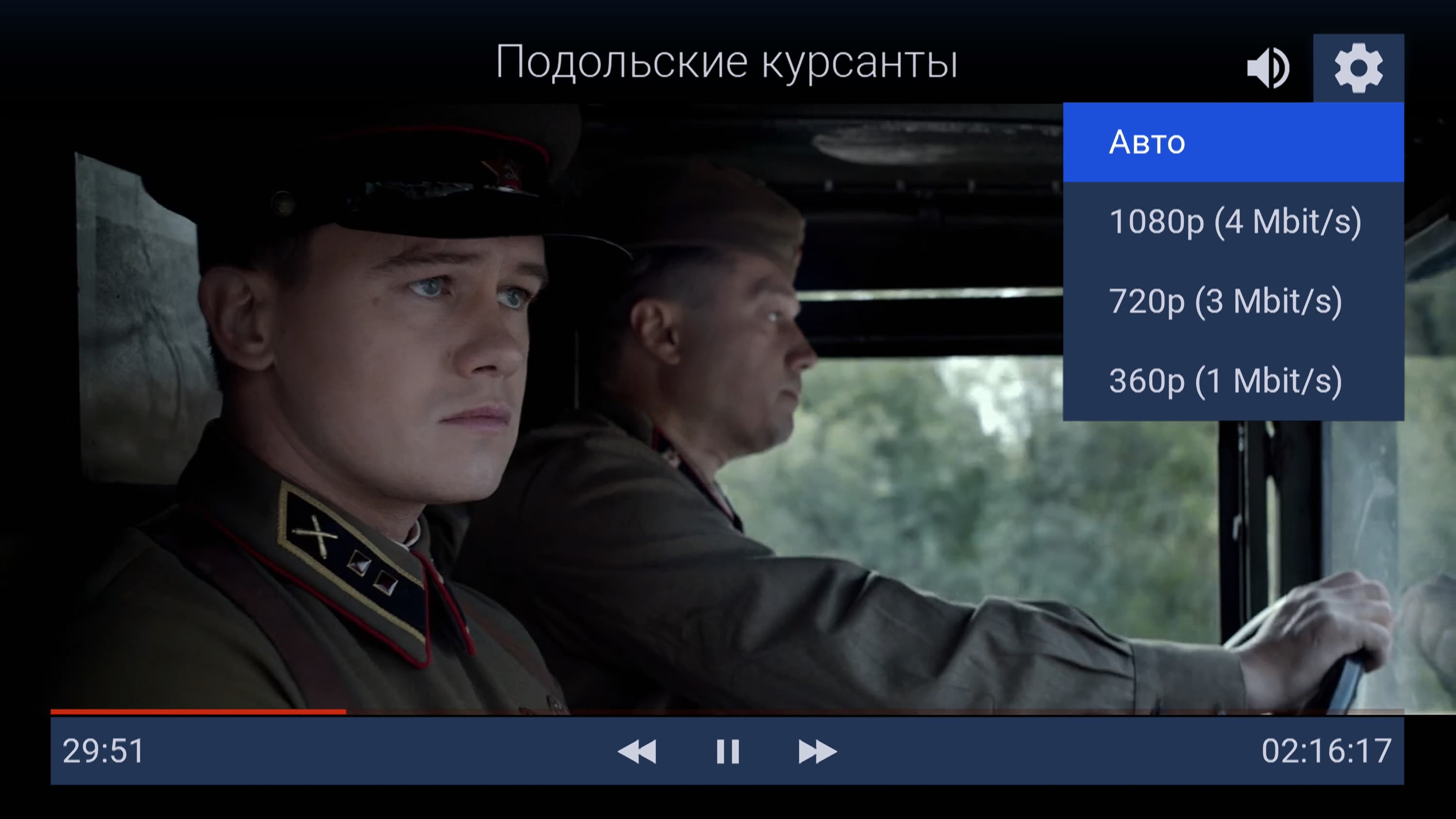 При просмотре рекомендуемого контента пользователь может выбрать качество вплоть до Full HD (в теории возможен просмотр и UHD-контента, это зависит от оператора, его предоставляющего). Плеер содержит кнопки для перемотки вперед/назад.