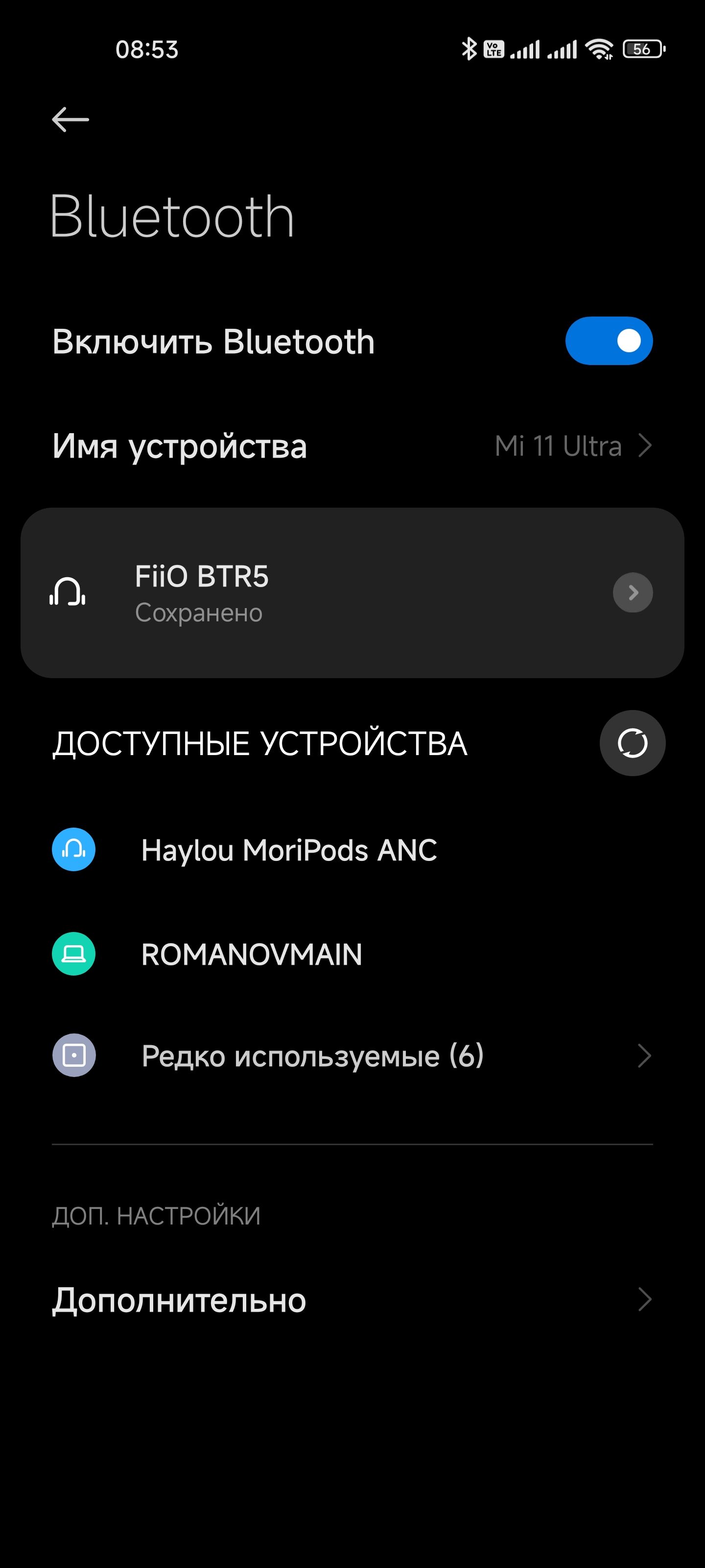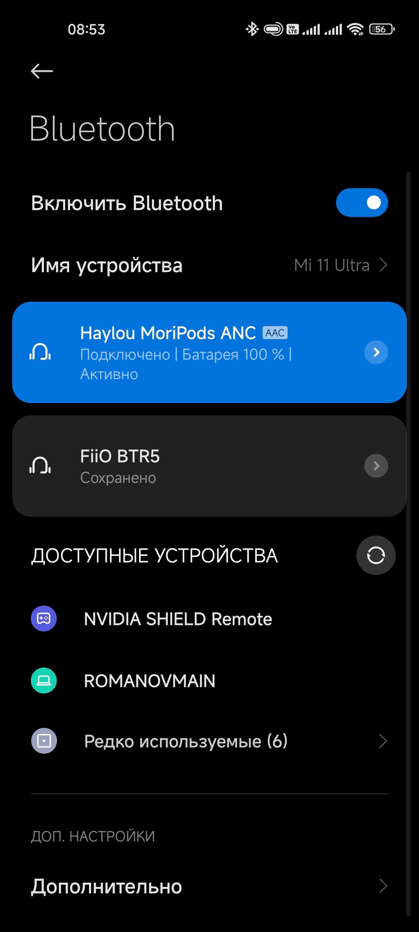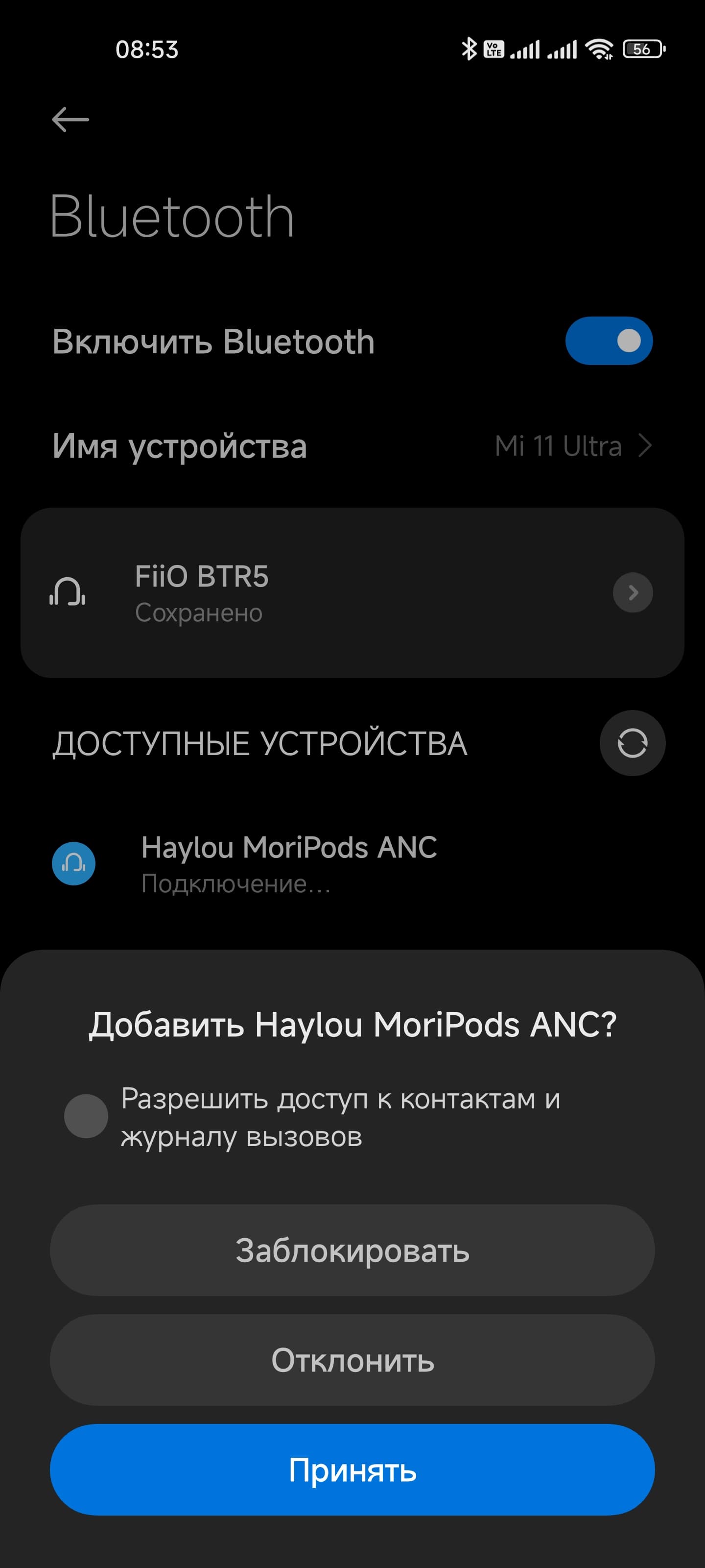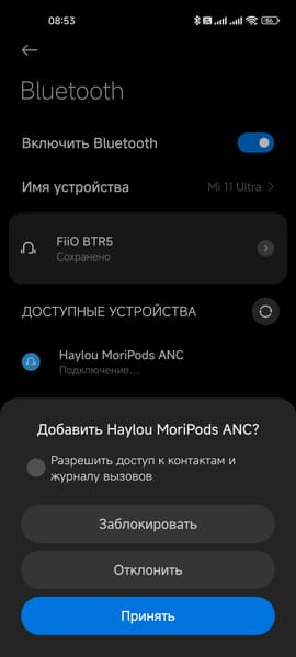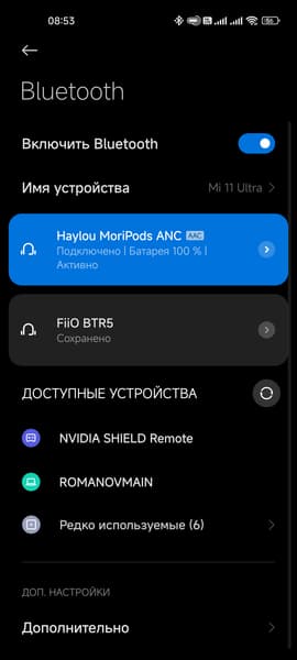 Процесс подключения гарнитуры традиционно прост и незатейлив: после извлечения из кейса Haylou MoriPods ANC пытаются соединиться с уже «знакомыми» устройствами, если этого не происходит — активируют режим сопряжения. Далее остается найти их в соответствующем меню используемого смартфона.