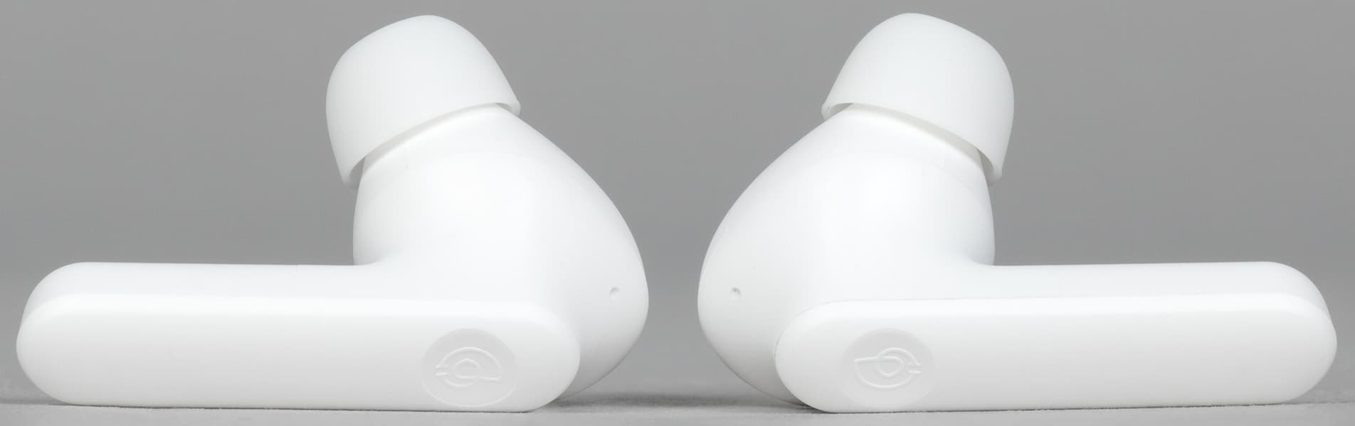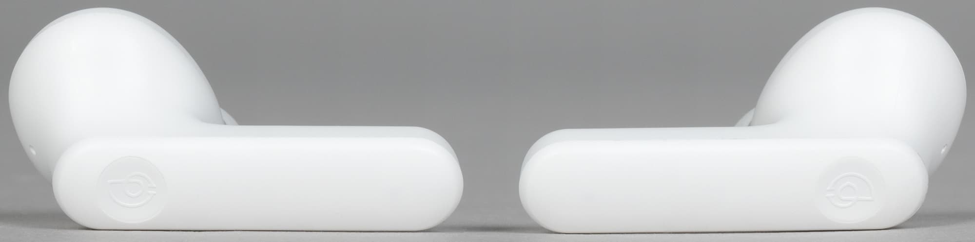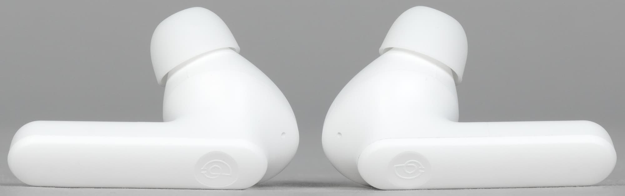 Выполнена гарнитура в белом цвете, других вариантов оформления мы пока не видели. Дизайн простой и приятный — от бюджетной гарнитуры мы большего и не ждем.