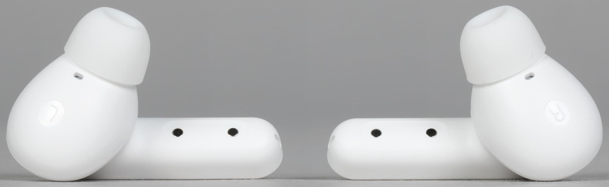 На торцах «палочек» видны отверстия микрофонов для голосовой связи внутри небольшого углубления, которое чисто теоретически может немного защитить от «задувания».
