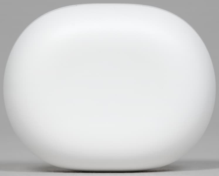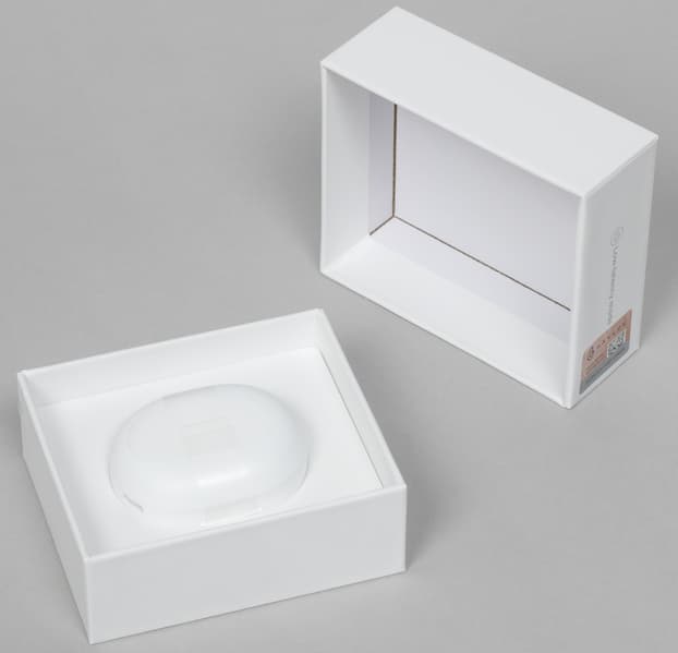 Кейс имеет форму, которую принято сравнивать с морской галькой, ну или чуть менее романтично — с куском мыла. Благодаря компактным размерам, плоским поверхностям сверху и снизу, а также отсутствию острых граней его удобно носить в кармане. На крышку нанесено название бренда.