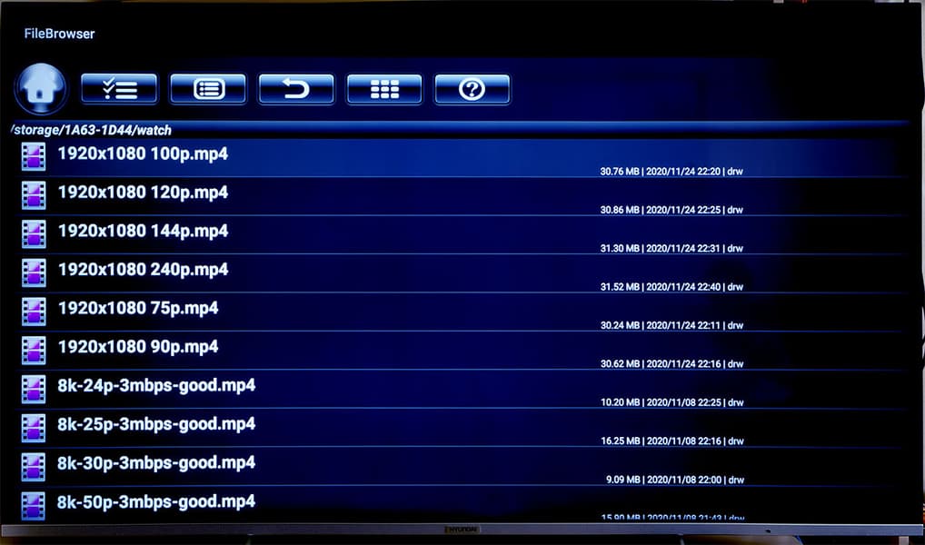 Прежде всего проведем наши традиционные тесты на корректное воспроизведение видеоконтента, имеющего разную частоту кадров. Плеер рассчитан на работу с видео 8K, но это не означает, что мы оставим без внимания 4K или «старомодное» Full HD. Мало ли что. Запускать будем поочередно все имеющиеся тестовые файлы, в том числе 8K, изготовленные специально для такого случая.