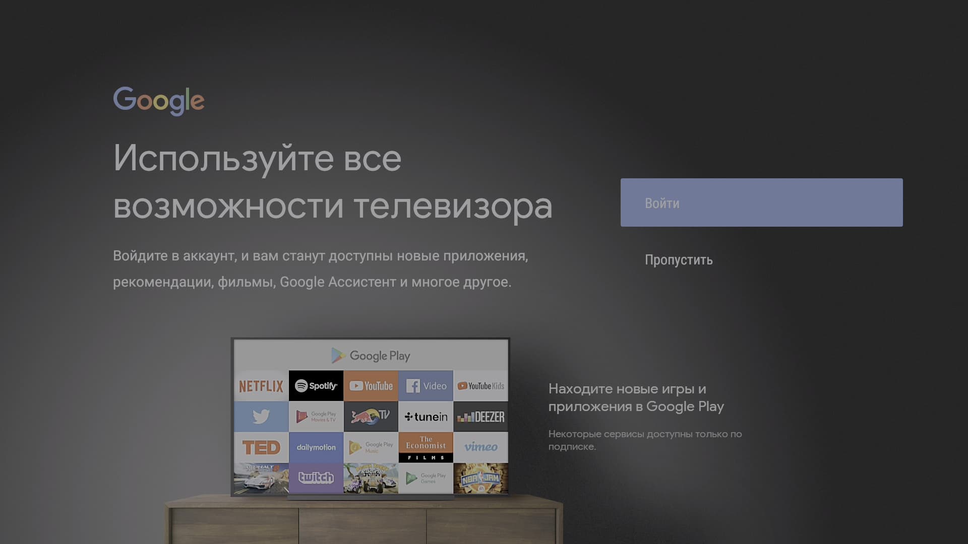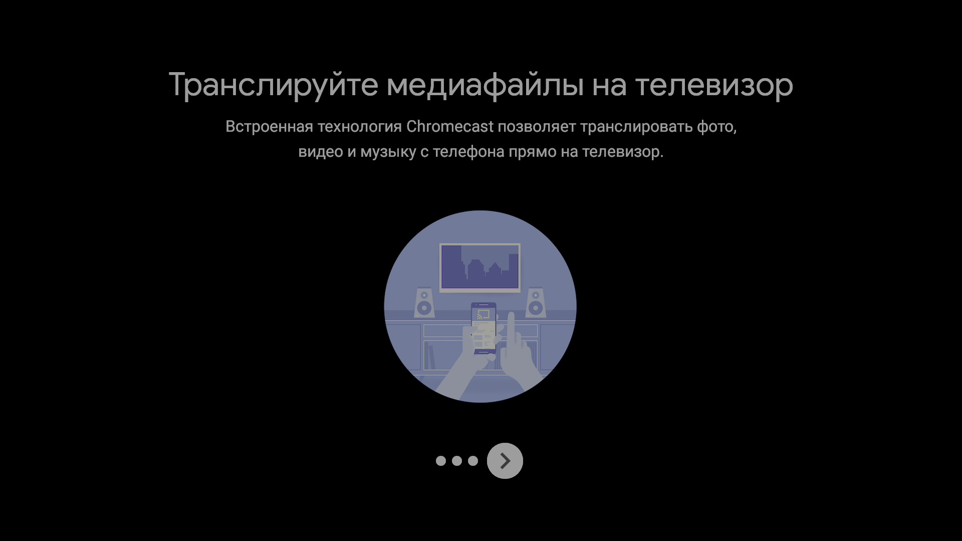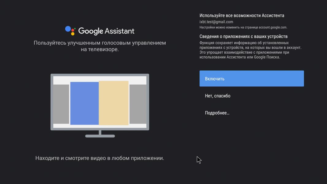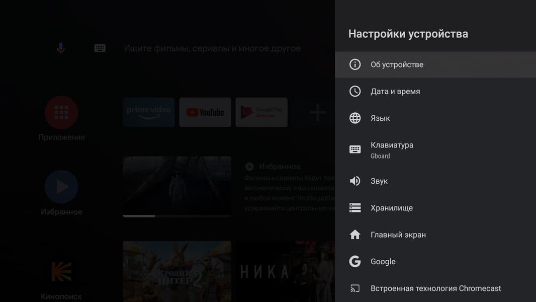 При первом включении устройство проведет пользователя через короткий пошаговый мастер настройки, где предлагается выбрать язык системы и войти в Google-аккаунт. Среди прочих пунктов присутствует также возможность подключить внешний пульт ДУ. Делать это пока не нужно, поскольку прилагаемый пульт — инфракрасный и не требует никаких подключений. Этим мы займемся позже, а пока обратим внимание на странный тусклый цвет интерфейса. Секрет раскроем ниже.