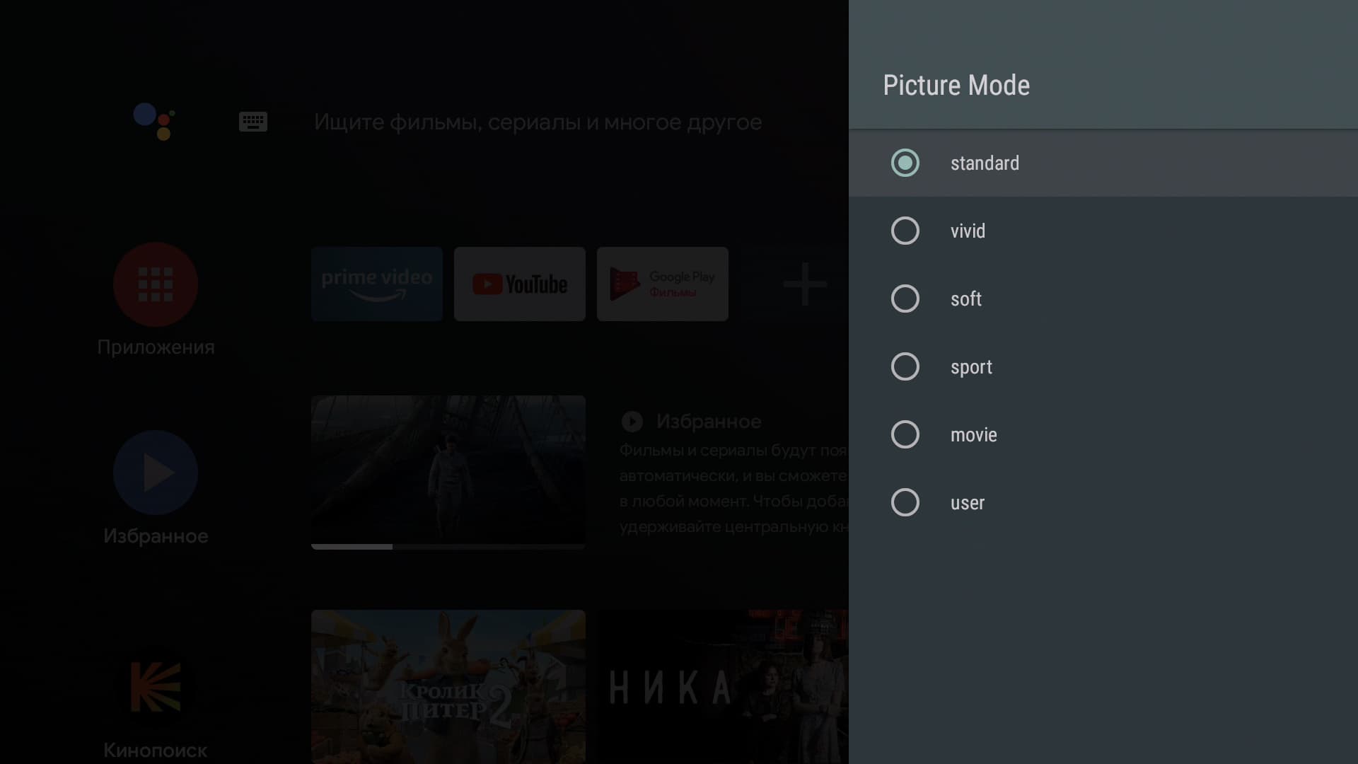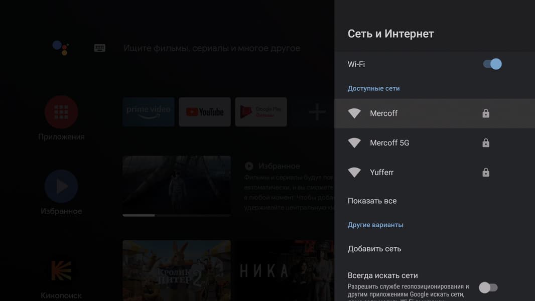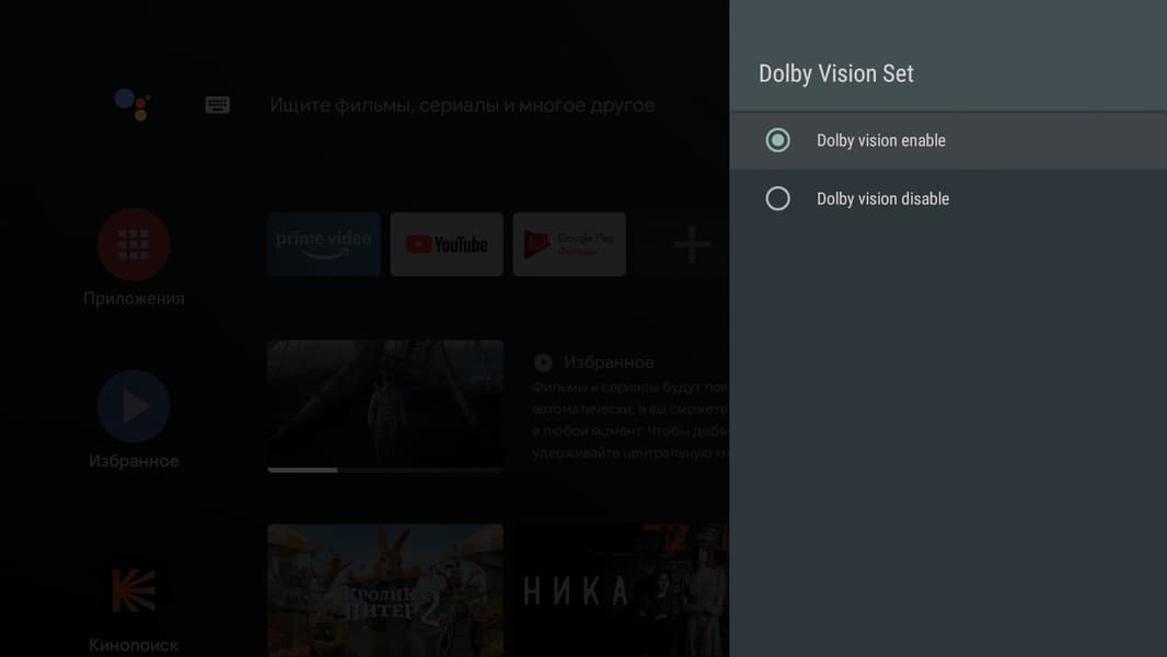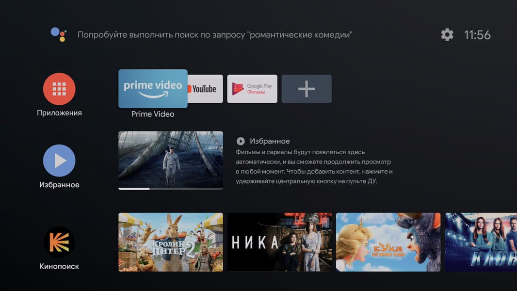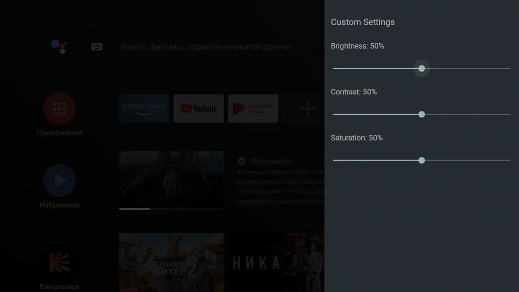 Главное меню плеера будет знакомо каждому владельцу Smart-телевизора с Android на борту. Впрочем, и другие телевизорные ОС выглядят как под копирку с небольшими вариациями. Все наглядно, понятно, не требует обучения и расшифровки. Мы уже, правда, немного тут похозяйничали, установив приложение Кинопоиск HD. Оно-то и вступило в права, заполнив экран плитками рекомендаций.