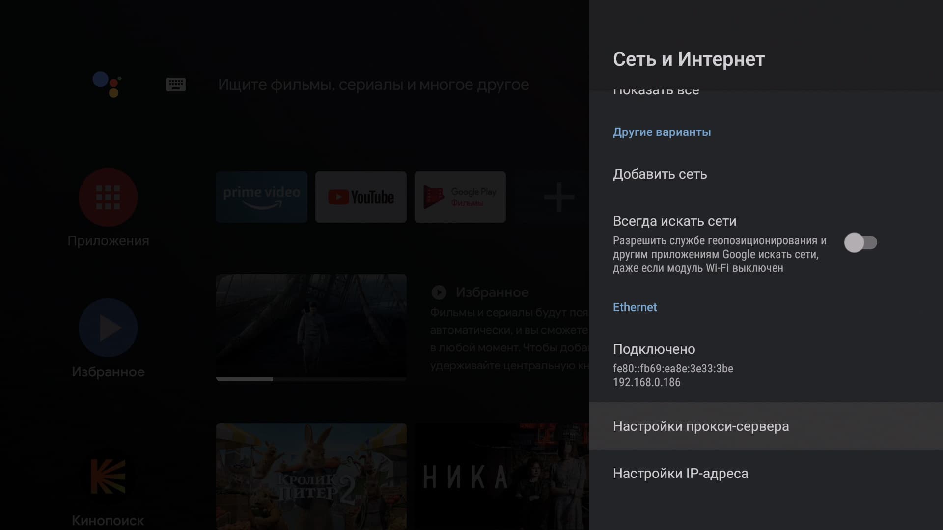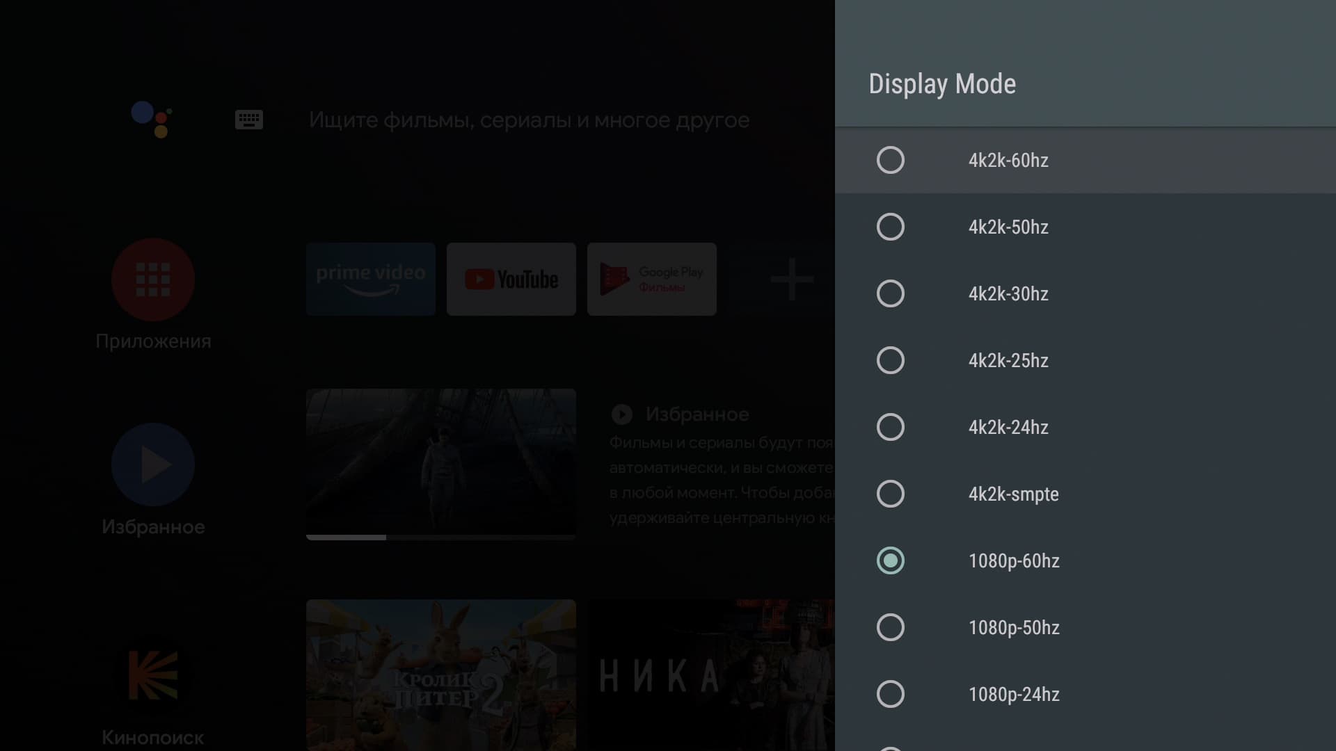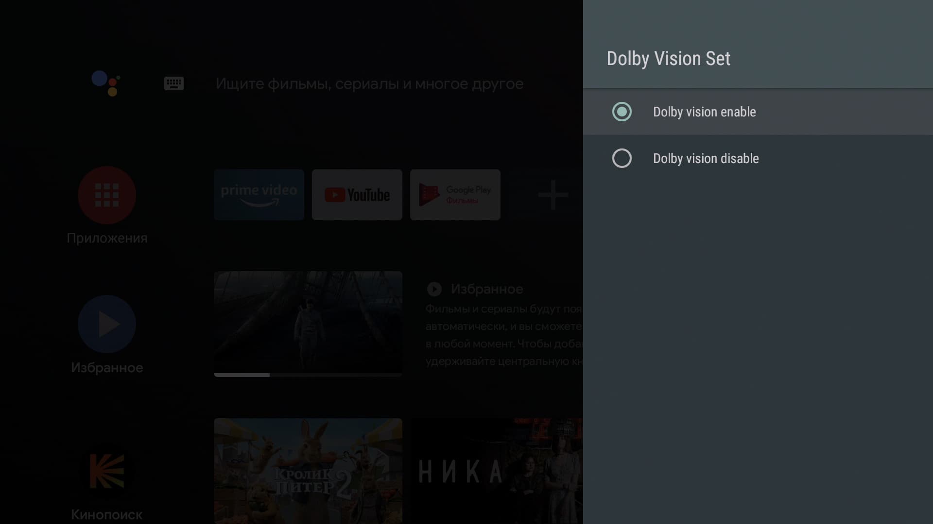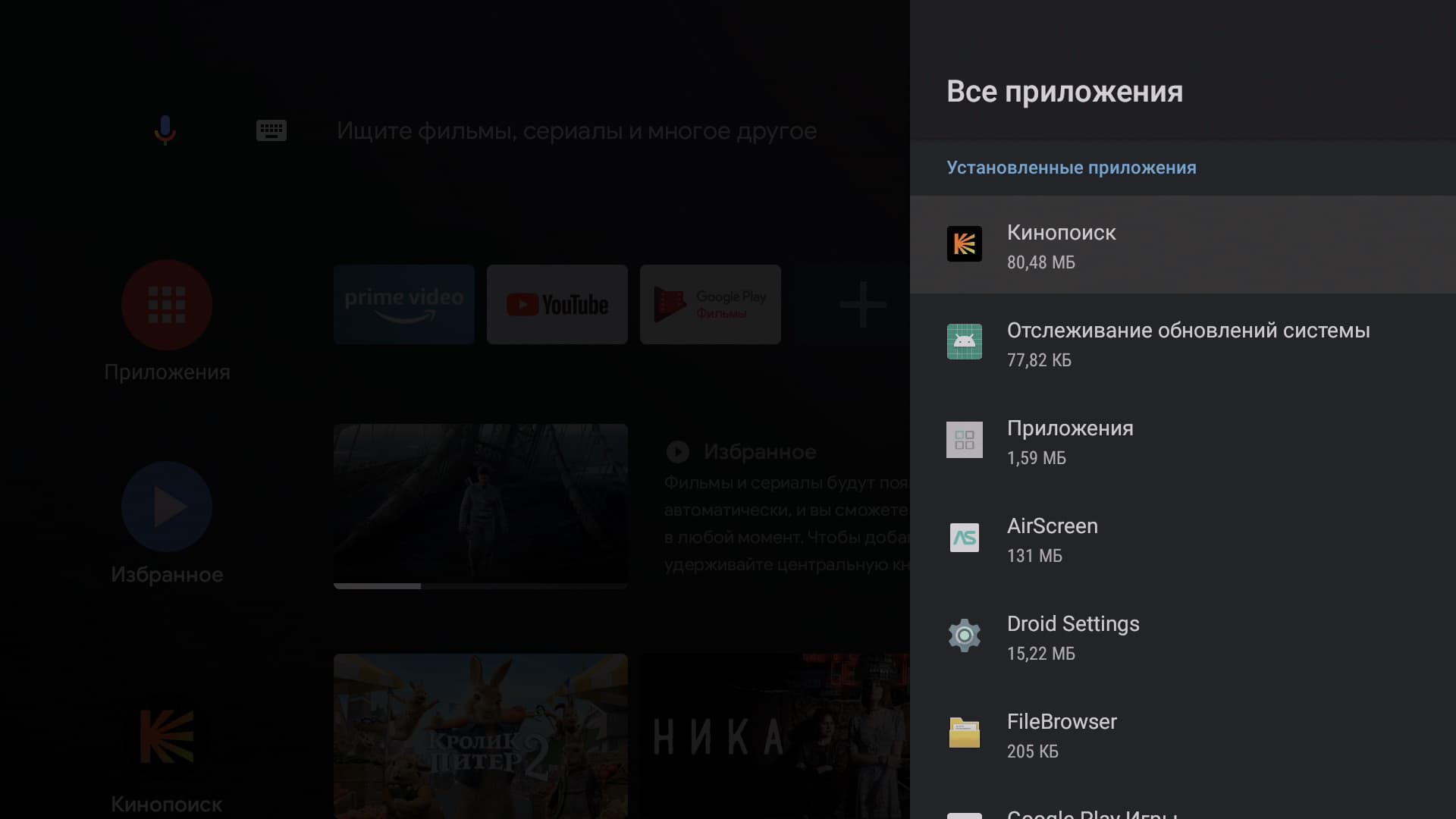 Главное меню плеера будет знакомо каждому владельцу Smart-телевизора с Android на борту. Впрочем, и другие телевизорные ОС выглядят как под копирку с небольшими вариациями. Все наглядно, понятно, не требует обучения и расшифровки. Мы уже, правда, немного тут похозяйничали, установив приложение Кинопоиск HD. Оно-то и вступило в права, заполнив экран плитками рекомендаций.