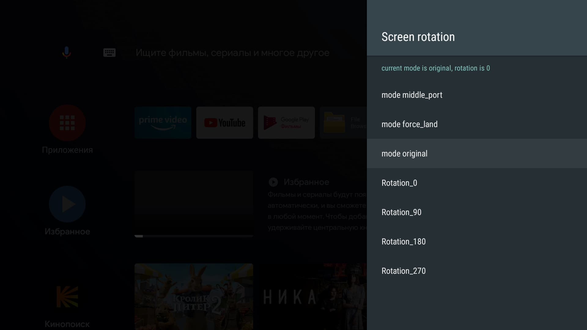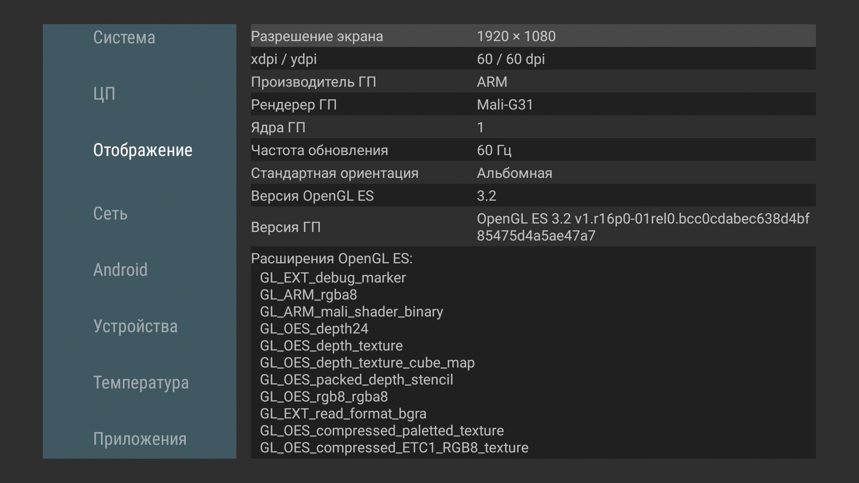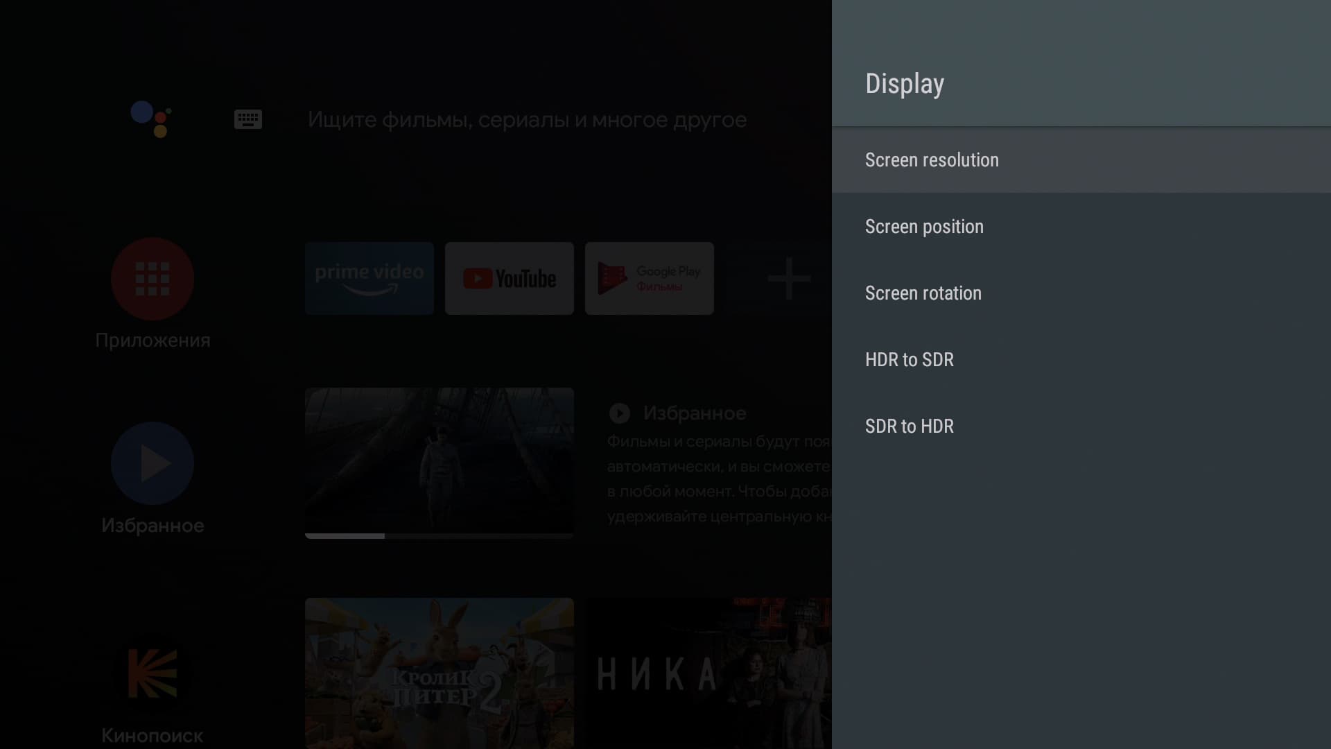 А вот настройки экрана (и не только) хранятся в отдельном пункте, который не переведен на русский: Droid Settings. Здесь имеется даже возможность включения поддержки Dolby Vision (это еще один способ передачи видео HDR).