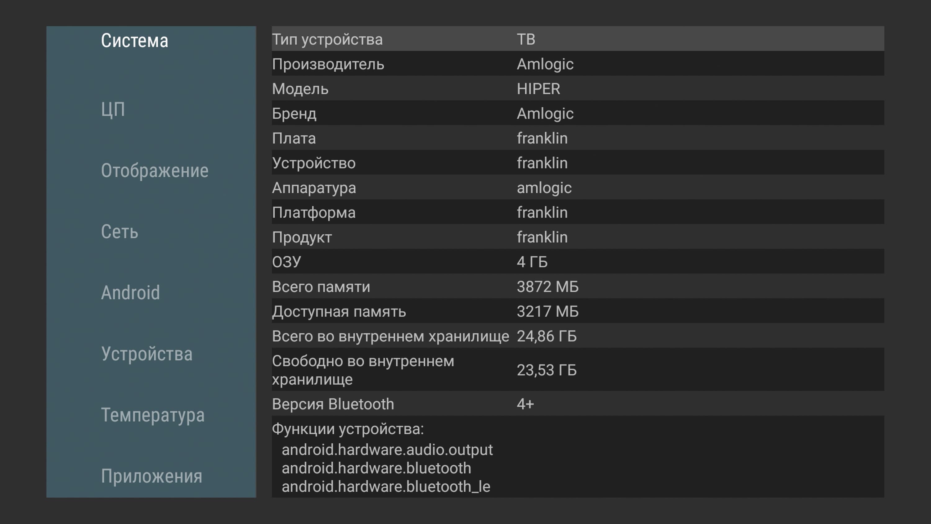 | Операционная система | Android TV | |