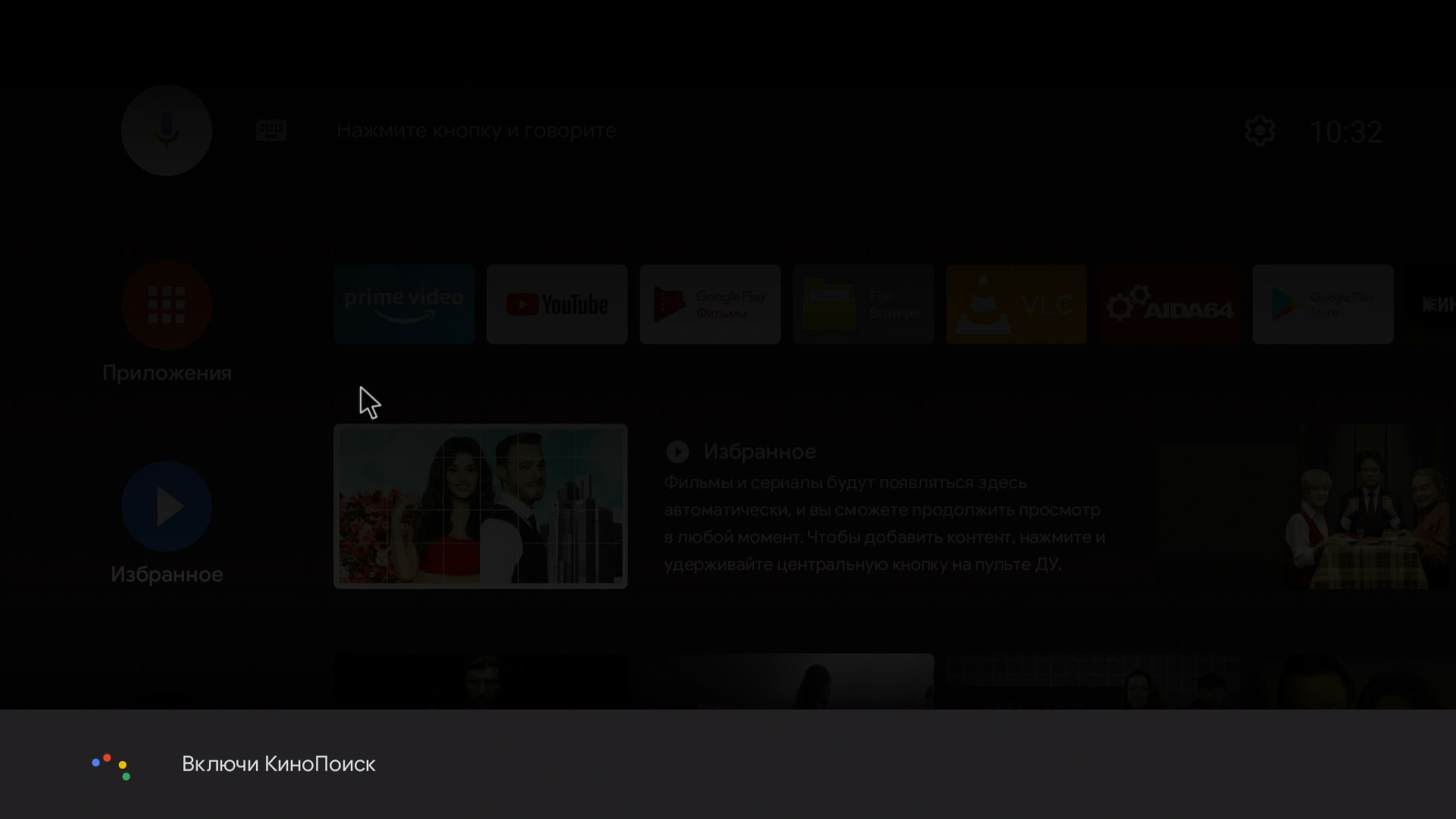 Плеер готов к работе через полминуты после подачи питания, о чем свидетельствует включившийся фиолетовый свет подсветки. Но полминуты — это так называемый «холодный старт». Если же плеер находился в спящем режиме с тусклой красной подсветкой, то после включения не проходит и двух секунд, как на ТВ появляется главный экран устройства. Столь быстрая загрузка объясняется тем, что плеер работает под управлением «урезанной» версии Android, Android-TV. Такая ОС имеется во многих телевизорах. Главное отличие Android-TV от обычного Android заключается в ограниченном списке приложений, которые дозволяется установить. И это логично. В плеерах и телевизорах нет компасов, NFC и прочих интерактивных штучек. В таком случае зачем забивать систему программным мусором?