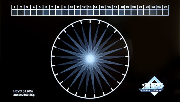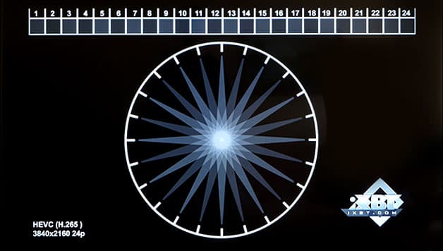 Можно видеть, что плеер прекрасно справляется с 8K-видео, но при условии, если частота кадров в таком материале не превышает 30 кадров в секунду. При воспроизведении видео с более высокими частотами плеер начинает пропускать кадры, что выражается в темных пробелах вместо белых стрелок. Между прочим, далеко не каждый компьютер с хорошей видеокартой способен на такое. Сравните цену компьютера со стоимость рассматриваемого плеера. Но эмоции — потом, давайте оценим качество воспроизведения 4K-материала. Здесь мы применим не только кодек HEVC, но и неподходящий для 4K кодек — устаревший AVC (H.264), который не предназначен для эффективного сжатия 4K-материала. Тем более, высокочастотного.