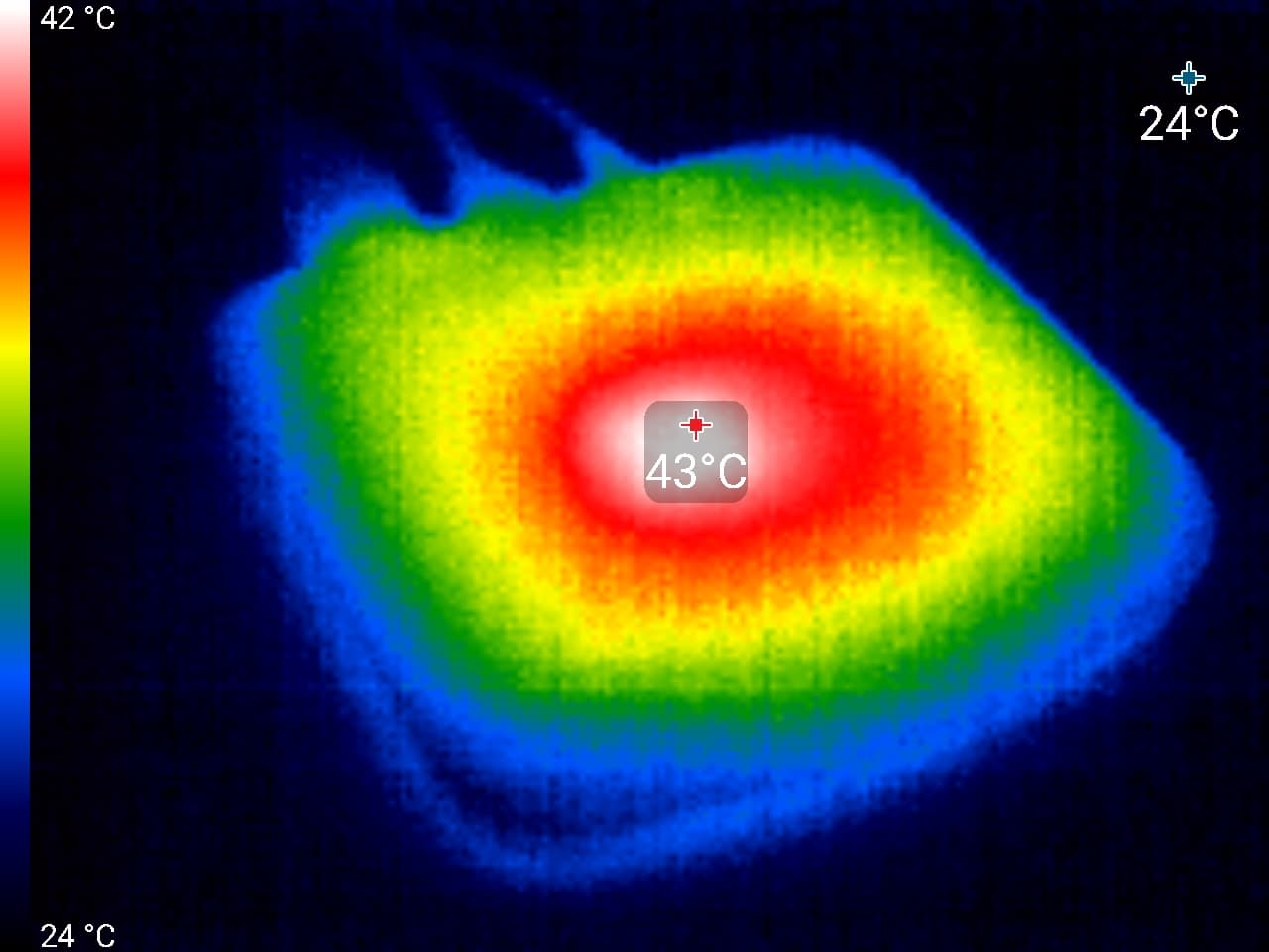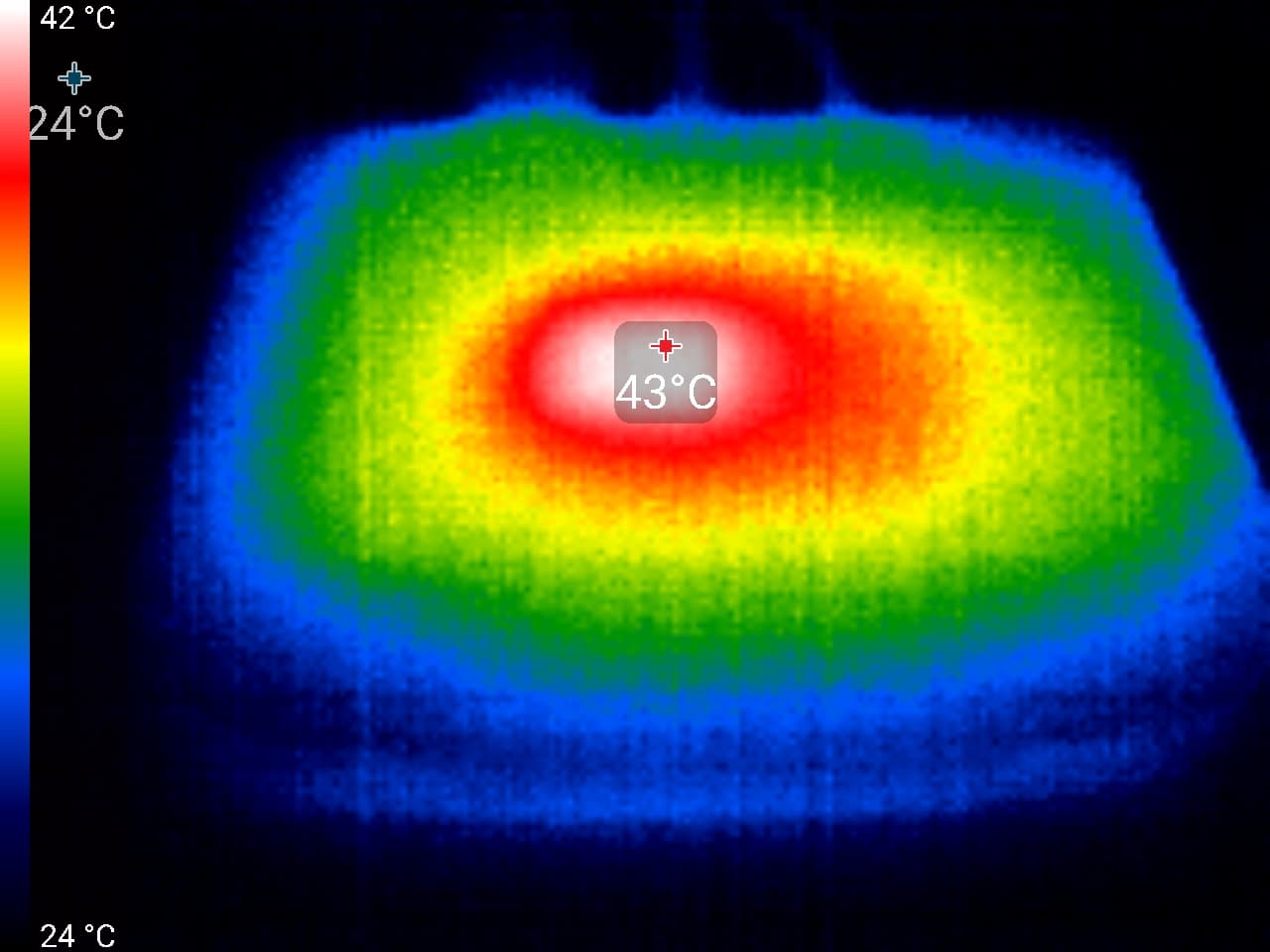 Всего 43 °C — и это без активного охлаждения и без достаточной вентиляции корпуса! Нет, беспокоиться о возможном перегреве устройства нет никакого смысла.