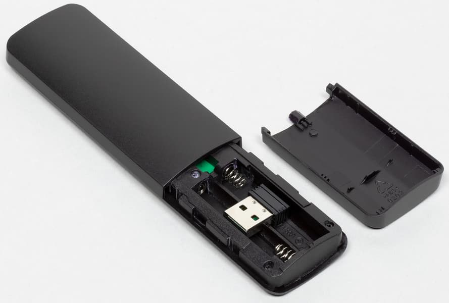 Два предоставленных вместе с плеером радиопульта отличаются друг от друга лишь количеством кнопок. Ну и, конечно, весом и чуточку ценой. Каждый пульт снабжен USB-догнлом, который вставляется в USB-порт совместимого устройства (ТВ, плееры или ПК).