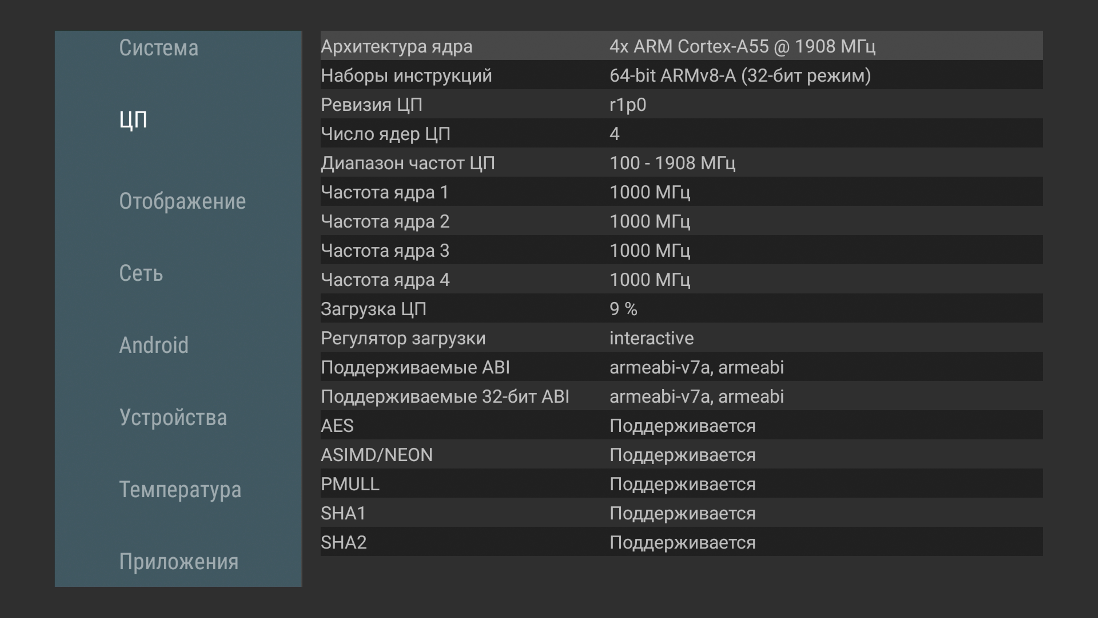 | Процессор | 4-ядерный кластер ARM Cortex-A55 | |