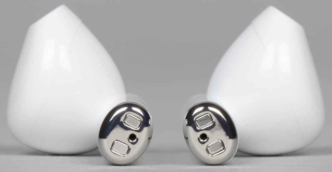 Управление осуществляется с помощью сенсорных зон на внешней стороне «ножек». Профиль управления прост и незатейлив: