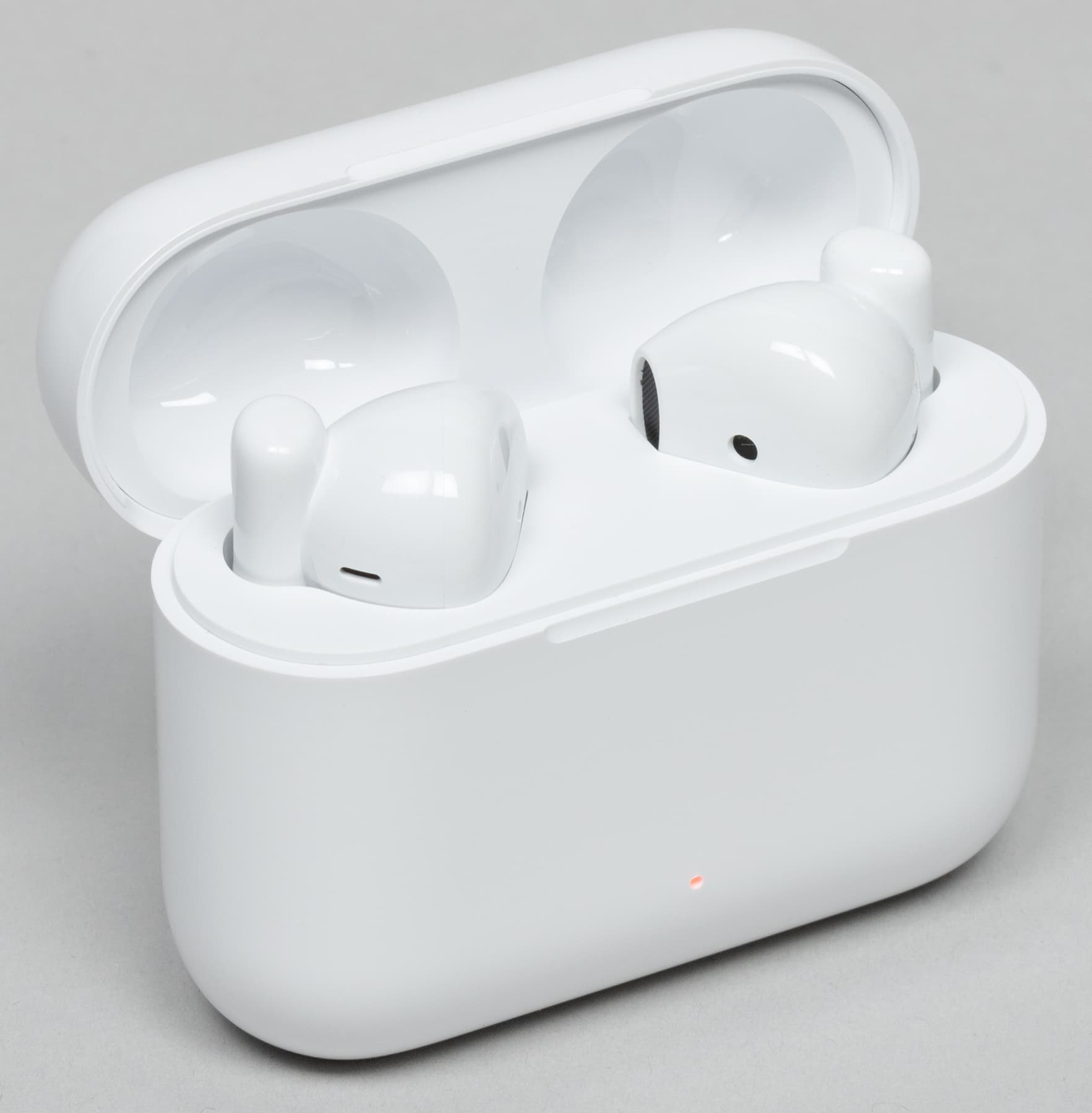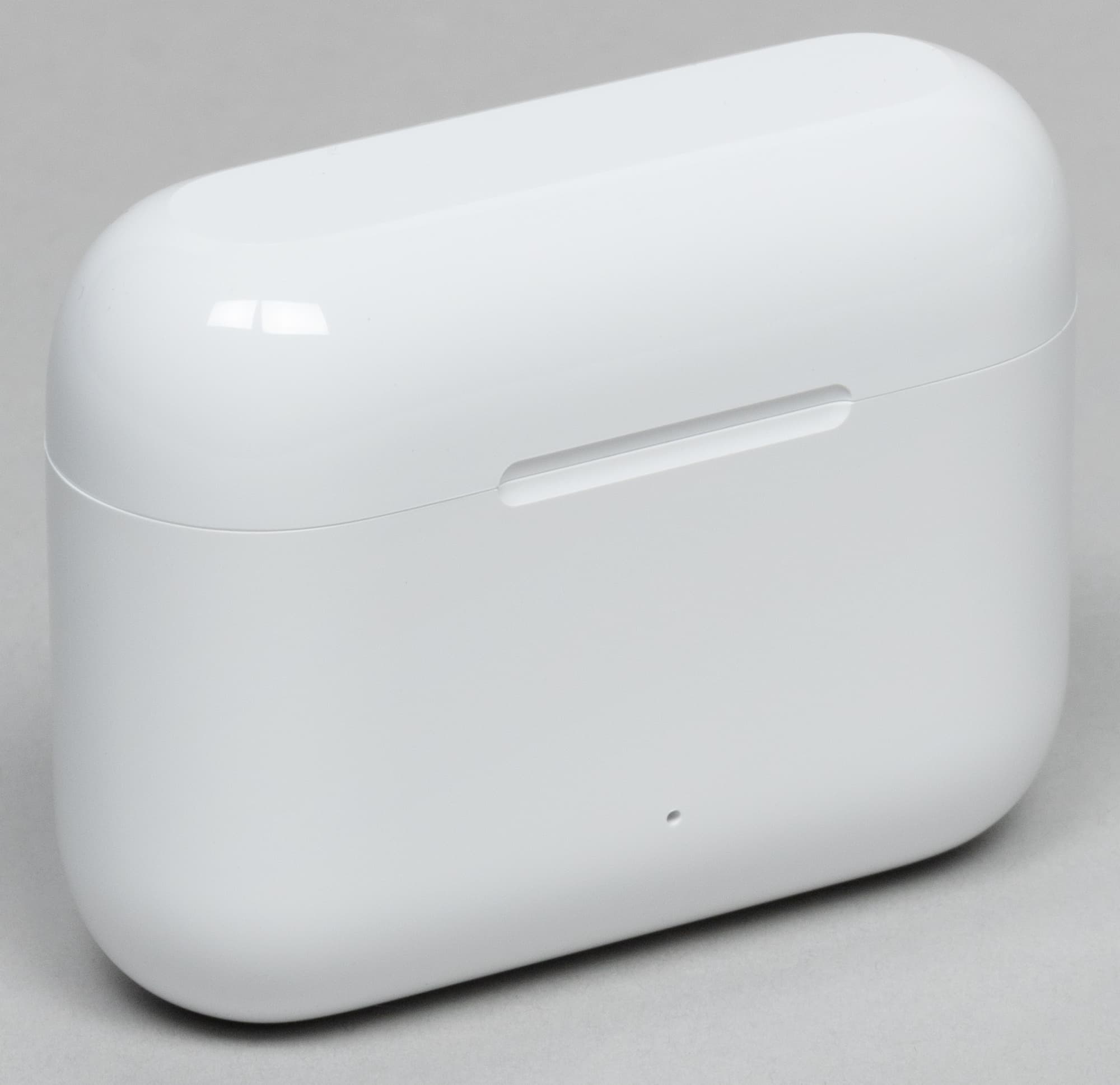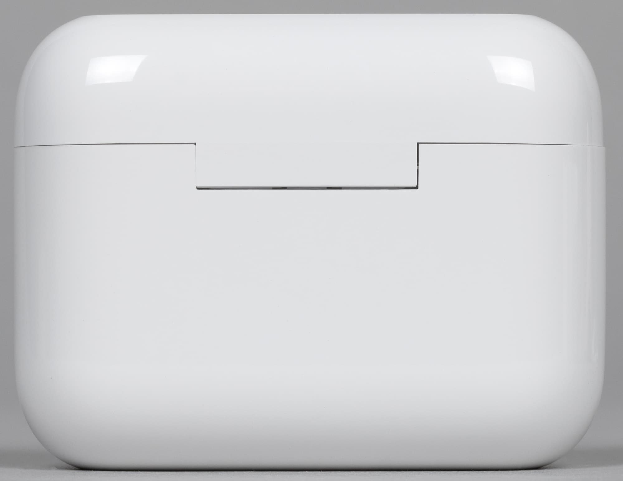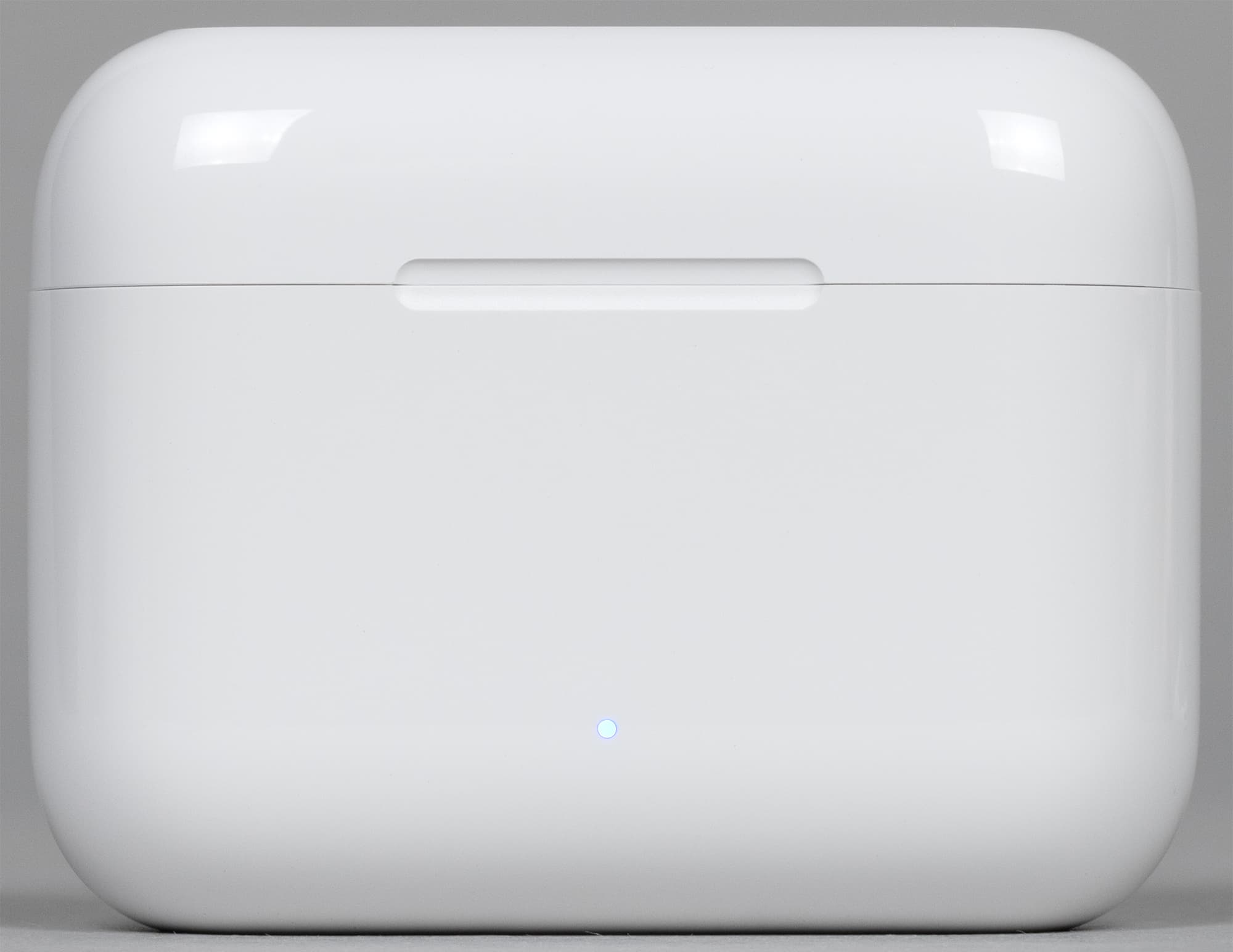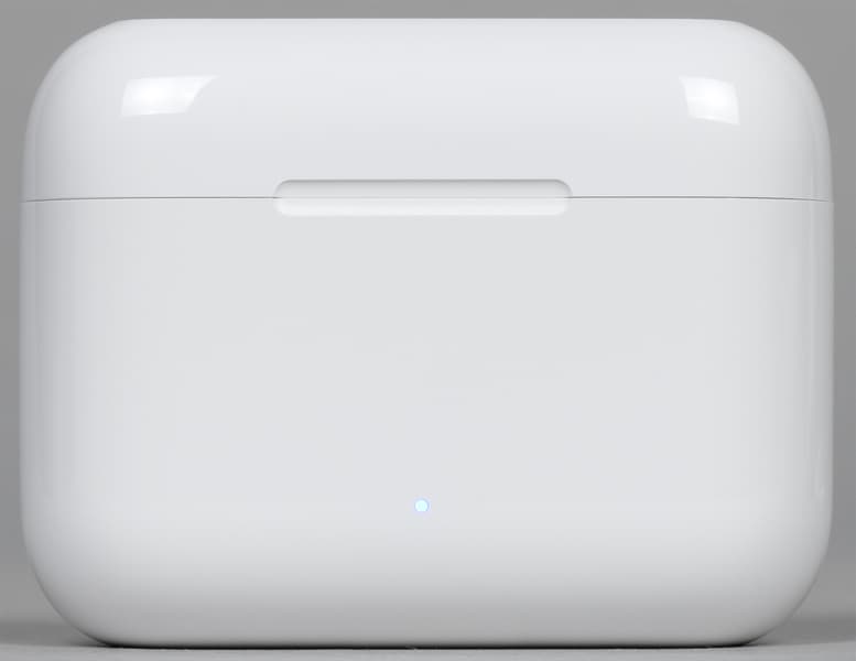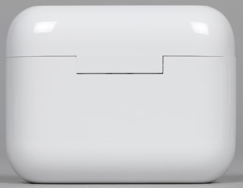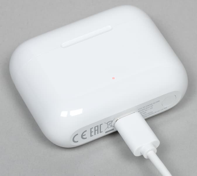 Маленький индикатор на передней панели горит синим при активации сопряжения и красным — когда заряд аккумулятора подходит к концу. Получить более подробную информацию об уровне заряда кейса, к сожалению, нельзя. В месте контакта крышки с корпусом есть небольшой вырез, облегчающий ее открытие.