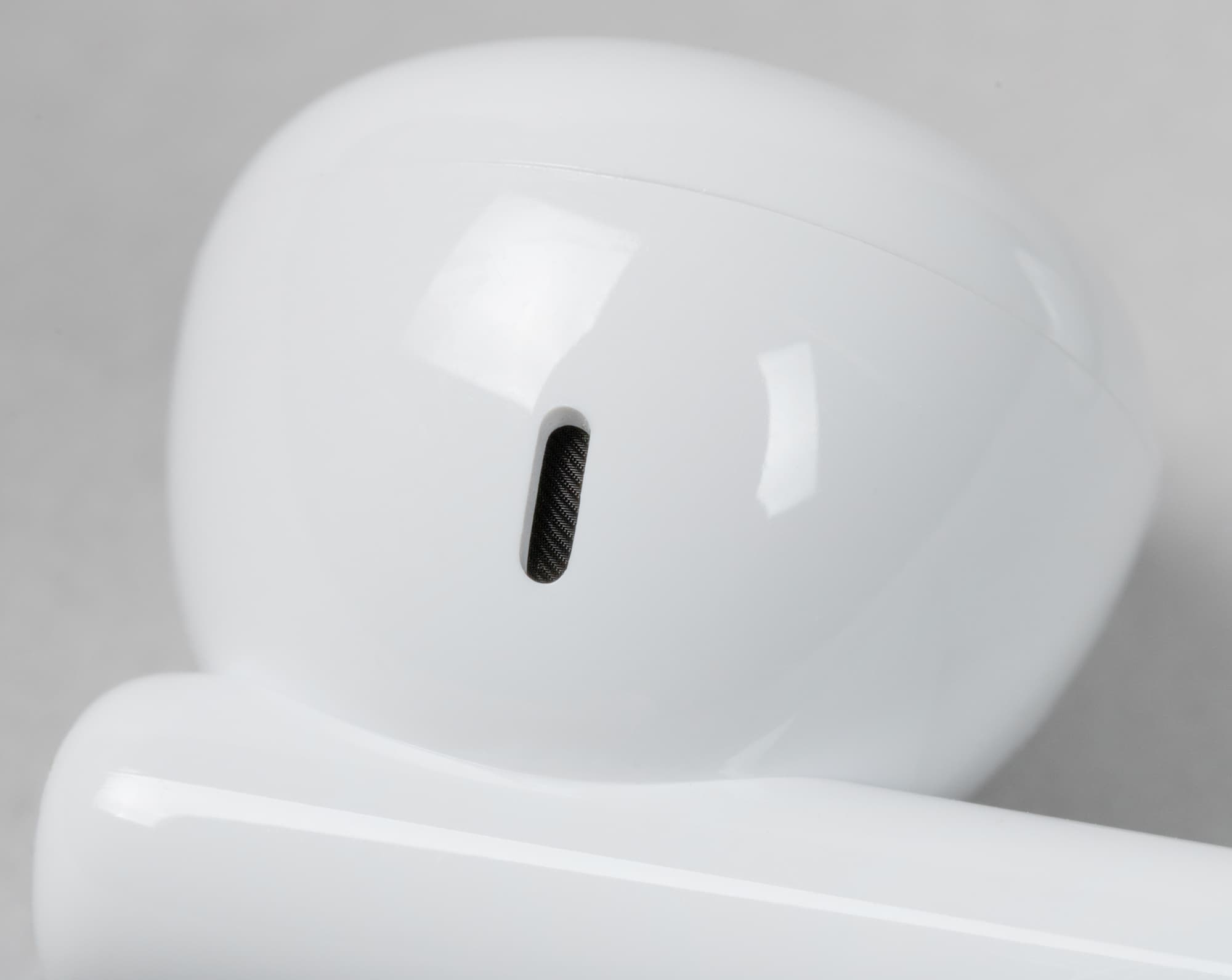 Отверстие звуковода прикрыто сеткой, заметно утопленной внутрь — очистить ее при необходимости будет немного сложно, но вполне возможно. На боковой поверхности расположено круглое отверстие, которое в данном форм-факторе не только является компенсационным, но и отвечает за улучшение передачи НЧ-диапазона.