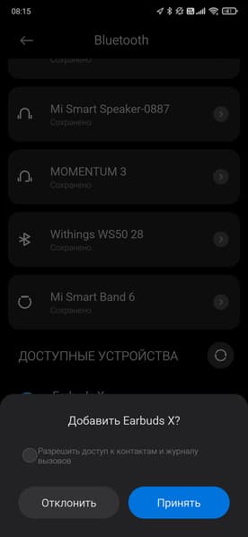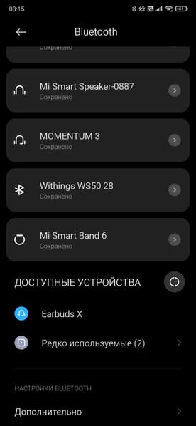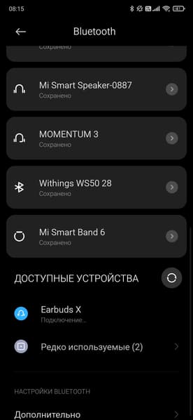 После открытия крышки кейса Honor Choice Earbuds X пытаются соединиться с уже «знакомыми» устройствами, если этого не происходит — активируют режим сопряжения, о чем сообщает индикатор на передней панели футляра. Далее остается найти их в соответствующем меню используемого гаджета. О подключении и других событиях устройство оповещает приятным булькающим звуком.