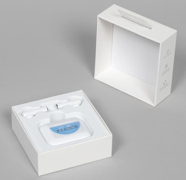 Наушники и кейс по отдельности размещены в пластиковом ложементе, футляр дополнительно защищен тонкой пластиковой накладкой.