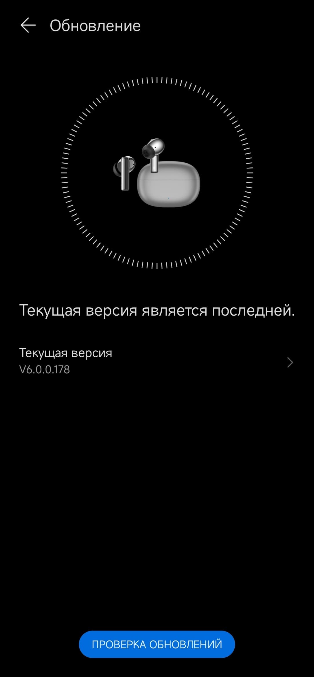 Первым делом — конечно, залезем на вкладку настроек. И не обнаружим там ничего особо интересного, только данные об устройстве, да версии ПО — всё важное вынесено в отдельные кнопки на главной странице. Но вспомним, что перед дальнейшей работой неплохо бы проверить актуальность прошивки гарнитуры — этим и займемся, тапнув по кнопке в правом нижнем углу.