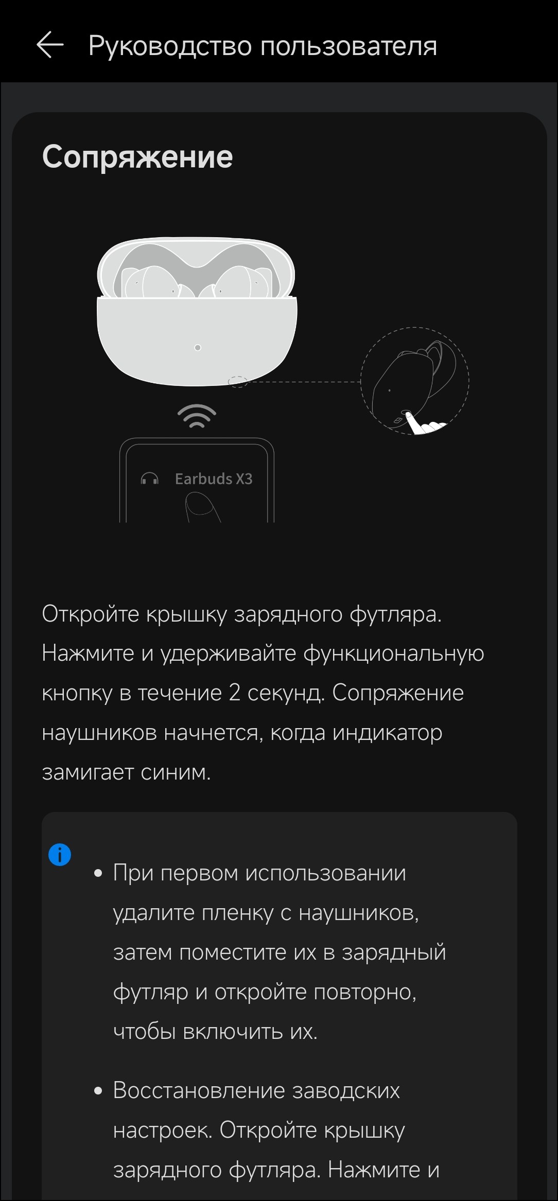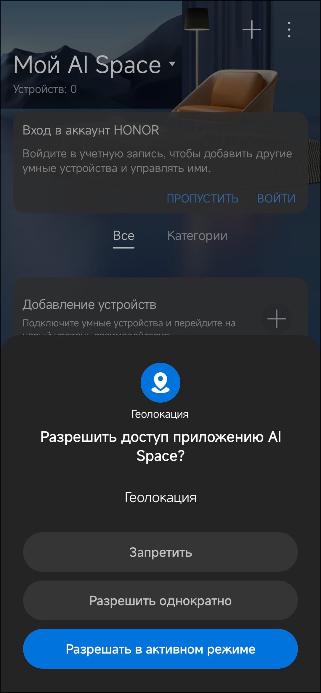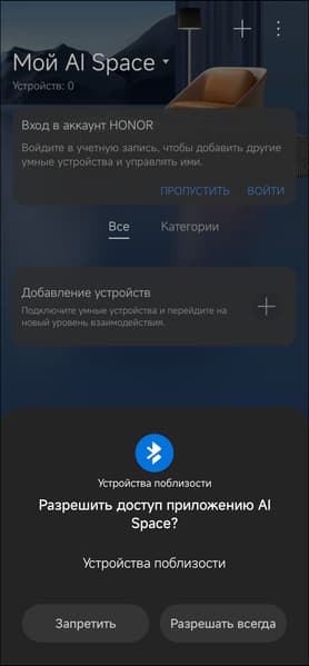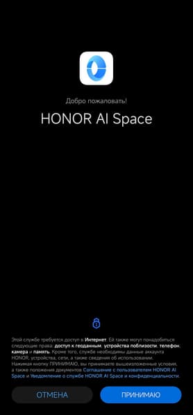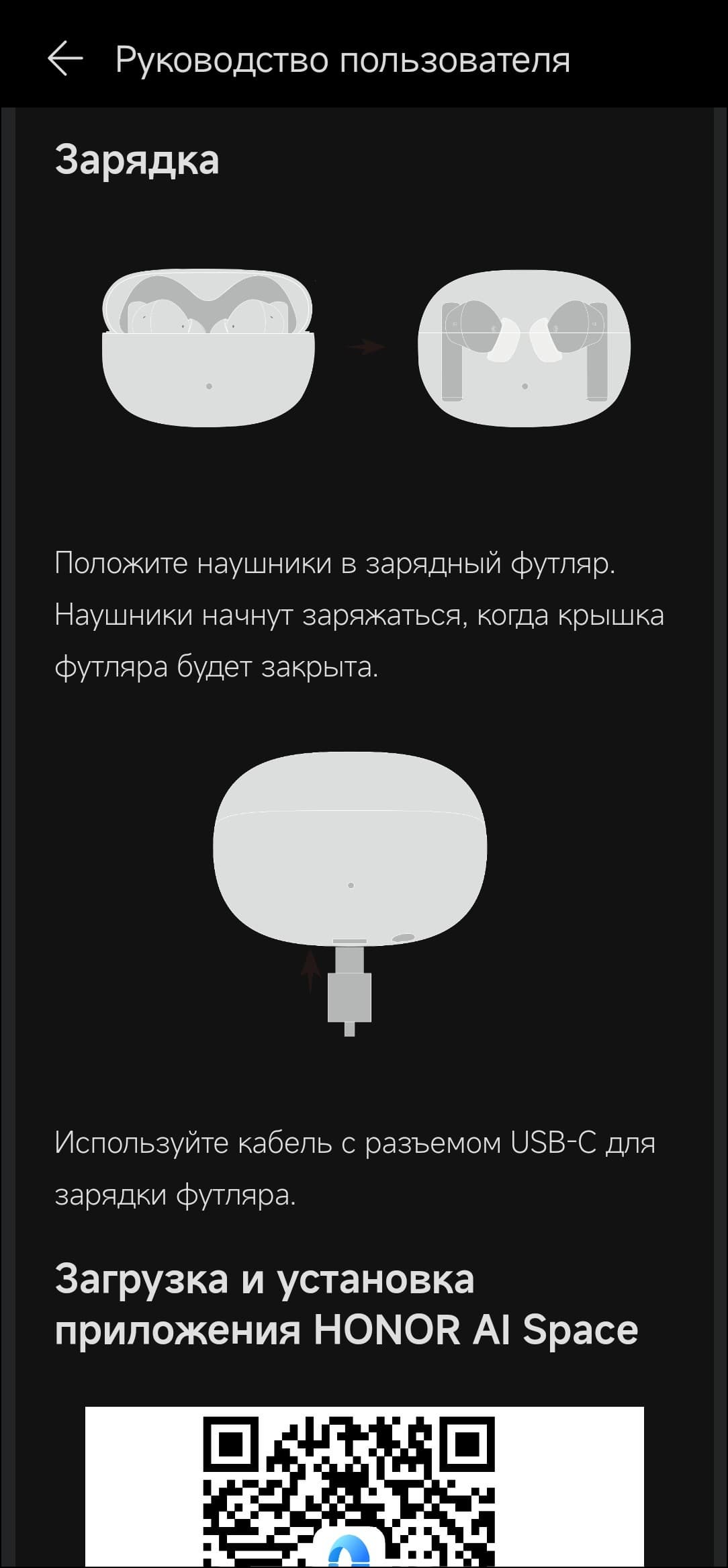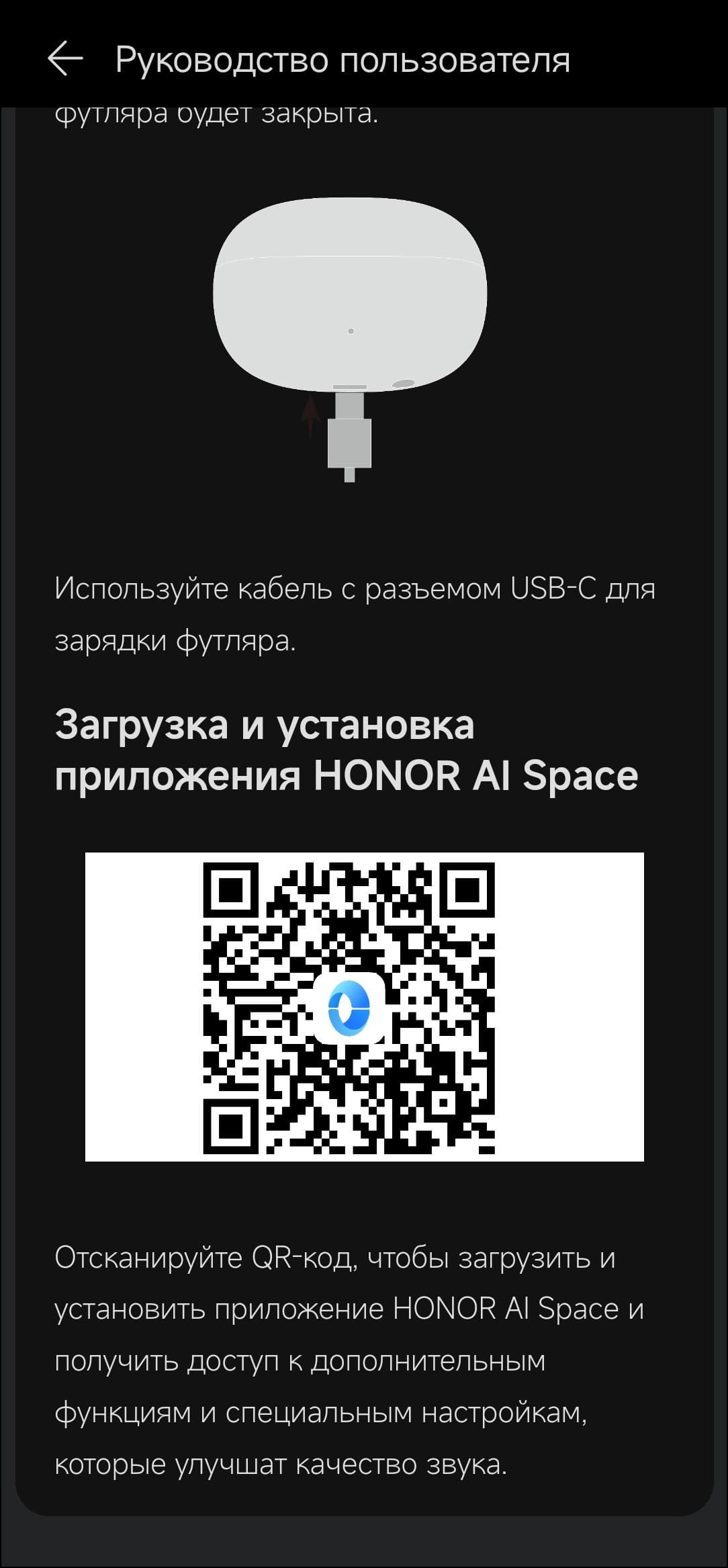 Гарнитура поддерживает свежую версию Bluetooth 5.2, подключение к смартфонам Honor под управлением Magic UI 6.0 и выше происходит в автоматическом режиме — при открытии крышки кейса на экране появляется всплывающее окно с приглашением осуществить сопряжение. В остальных же случаях можно воспользоваться меню смартфона либо осуществить подключение через ПО Honor AI Space, которое в любом случае стоит установить — пригодится. QR-код со ссылкой на скачивание есть на коробке с гарнитурой — им мы и воспользовались. Ну а дальше всё просто: устанавливаем, выбираем регион, даем необходимые разрешения...