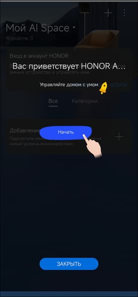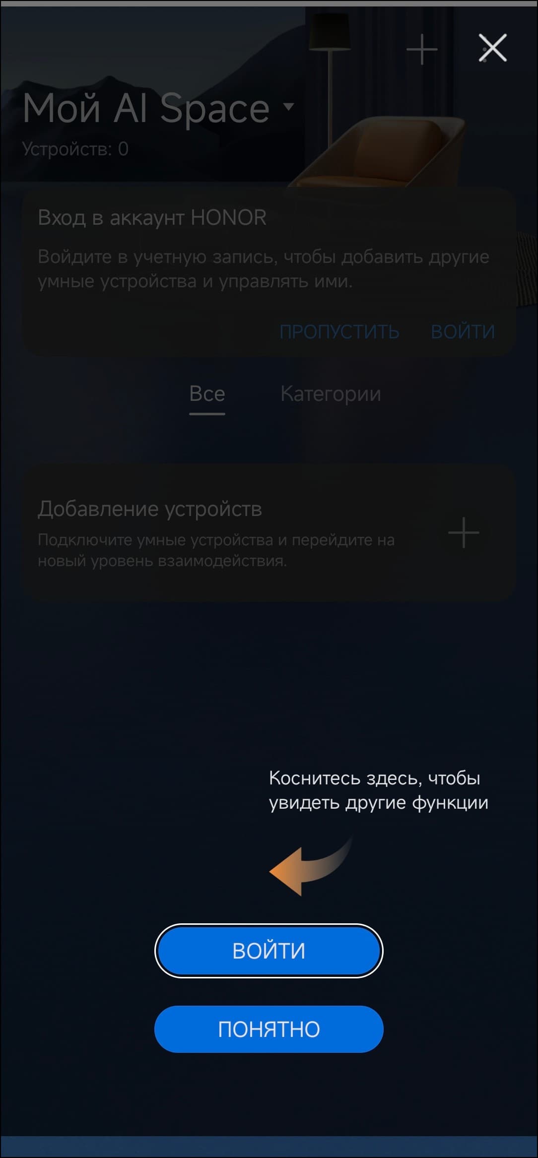| Включение голосового помощника (необходимо активировать функцию в приложении Honor Al Space) | тройное нажатие |