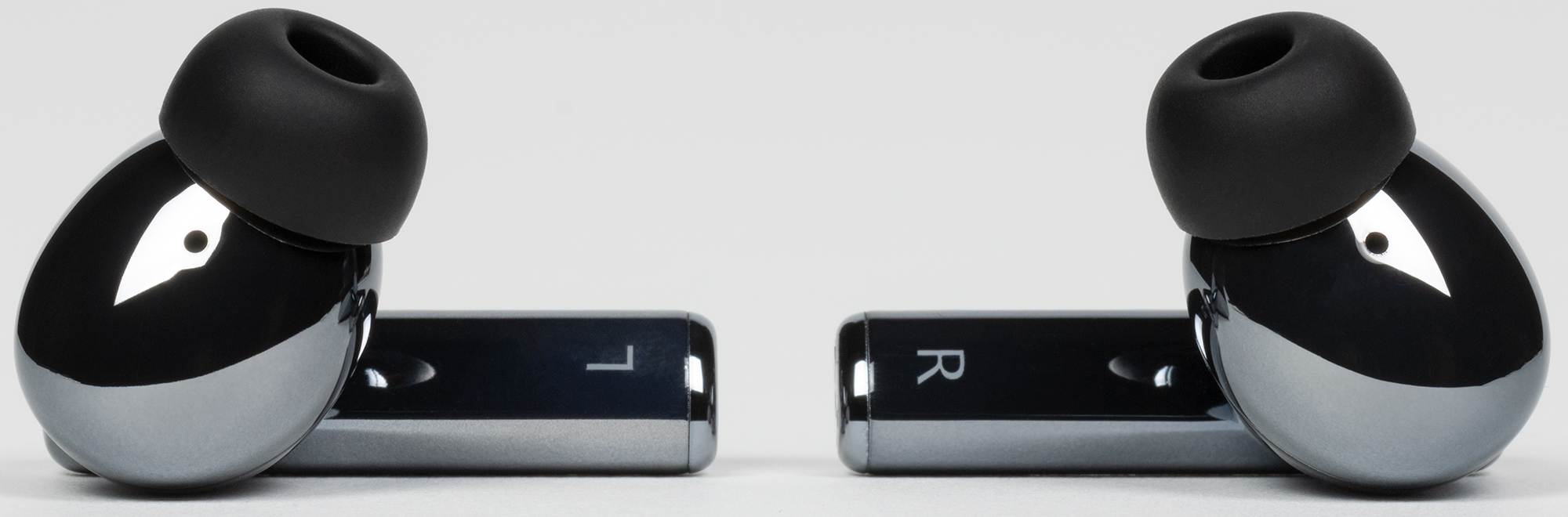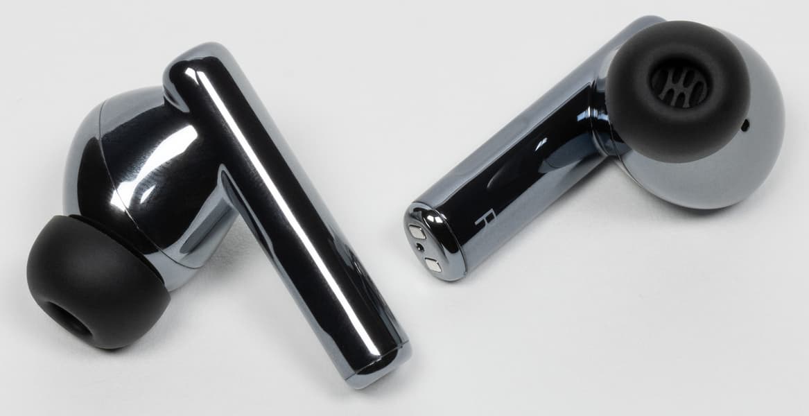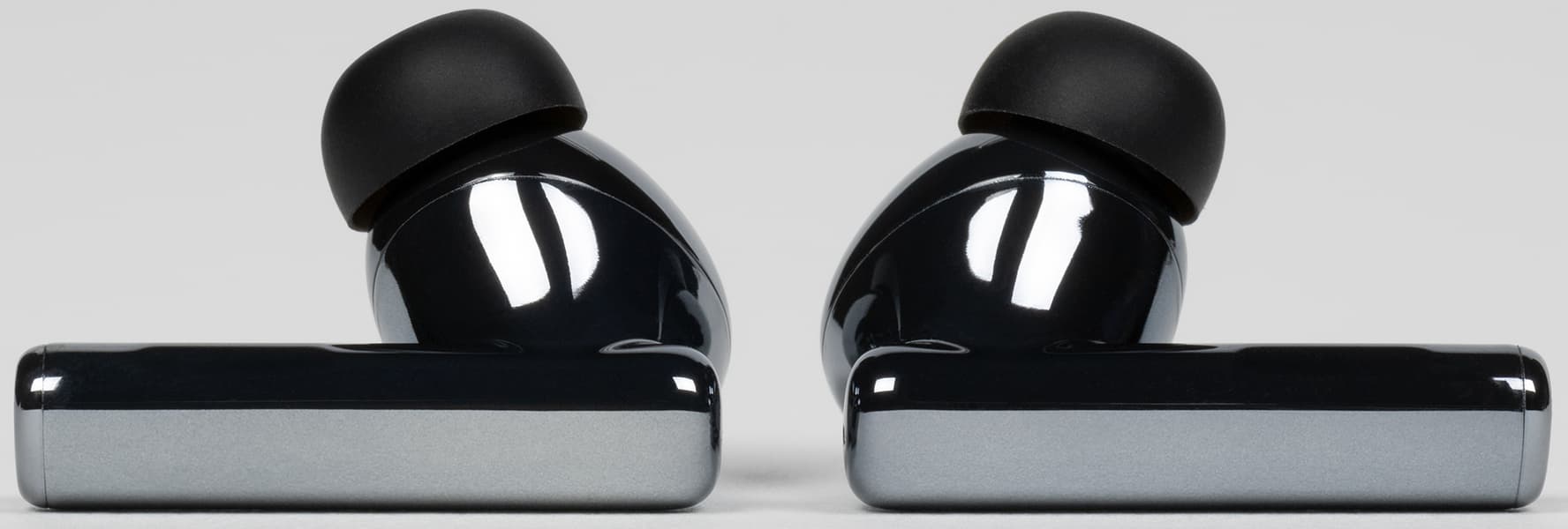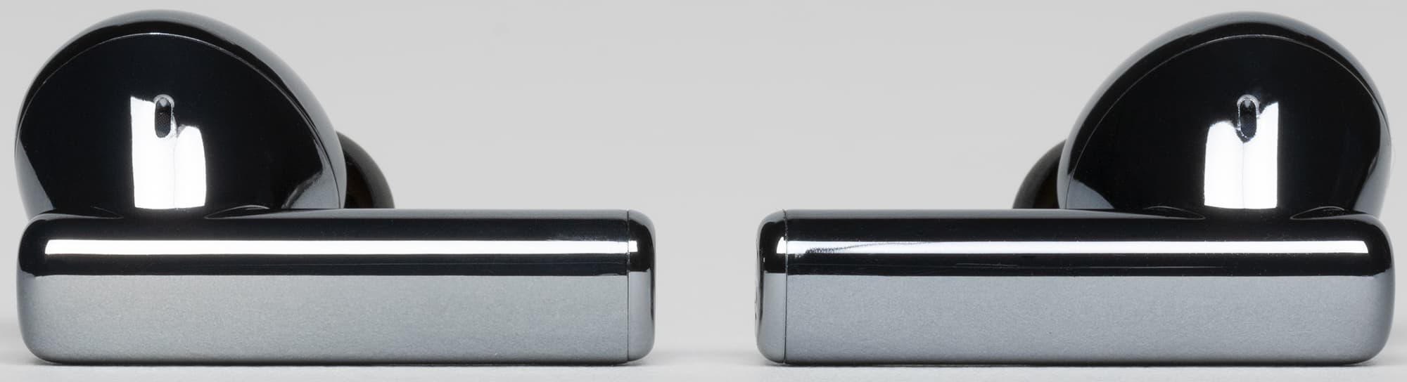 Боковые поверхности «палочек» являются сенсорными, но в дизайне это никак не отражено. На внешней стороне нет никаких надписей или декоративных элементов — строгость и даже аскетичность дизайна гарнитуры порадовала особо.