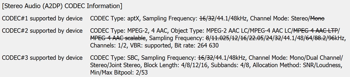 Любой из наушников может использоваться в монорежиме — достаточно просто убрать другой в кейс. Качество связи хорошее — проблем с «заиканием» звука не было ни в помещении, ни на улице. «Рассинхрона» звука в играх и при просмотре видео нам не удалось добиться даже специально, чтобы протестировать предусмотренный для таких случаев режим низкой задержки — даже в требовательных играх звук нас вполне устраивал. Поддержку кодеков мы традиционно проверили с помощью утилиты Bluetooth Tweaker. Всё как заявлено: SBC, AAC и aptX.