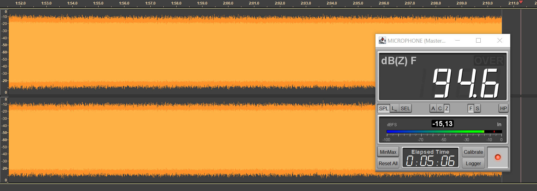 Вкратце напомним нашу методику тестирования автономности беспроводных наушников. Безопасным уровнем звукового давления при прослушивании музыки считается 75 дБ, но на практике большинство слушателей предпочитает уровень 90-100 дБ. Мы транслируем в наушники белый шум, фиксируя уровень SPL в районе 95 дБ, сразу после старта воспроизведения запускаем запись сигнала с измерительного стенда — по длине получившегося трека легко понять, сколько проработал каждый из наушников.