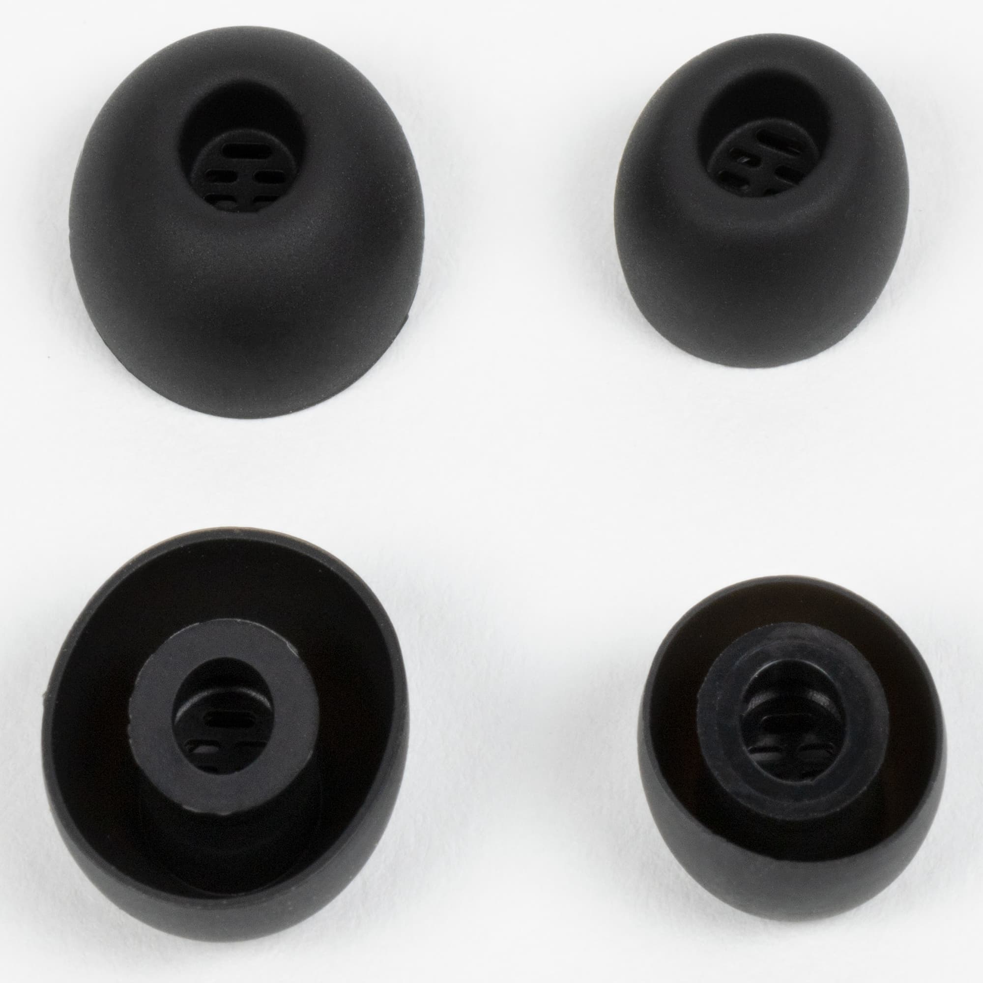Амбушюры выполнены из приятного на ощупь силикона. Внутри размещена «сеточка», препятствующая попаданию загрязнений в звуковод наушников.