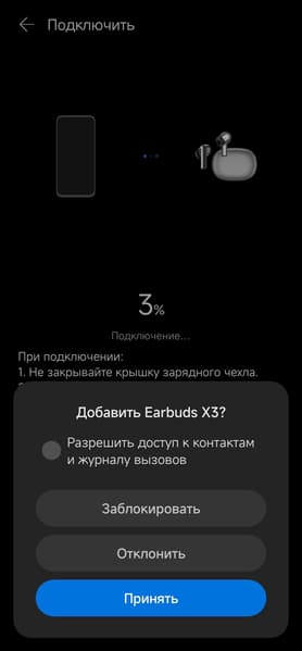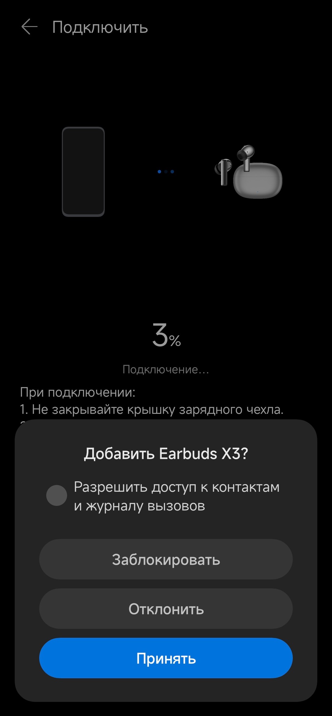 Ну и, наконец, когда всё готово — жмем на кнопку добавления устройства. Наушники обнаруживаются почти сразу, остается дать необходимые разрешения и чуточку подождать. После этого мы оказываемся на основной вкладке устройства, где собрана вся информация о нем. В частности, можно посмотреть уровень заряда аккумуляторов кейса и каждого наушника в отдельности.