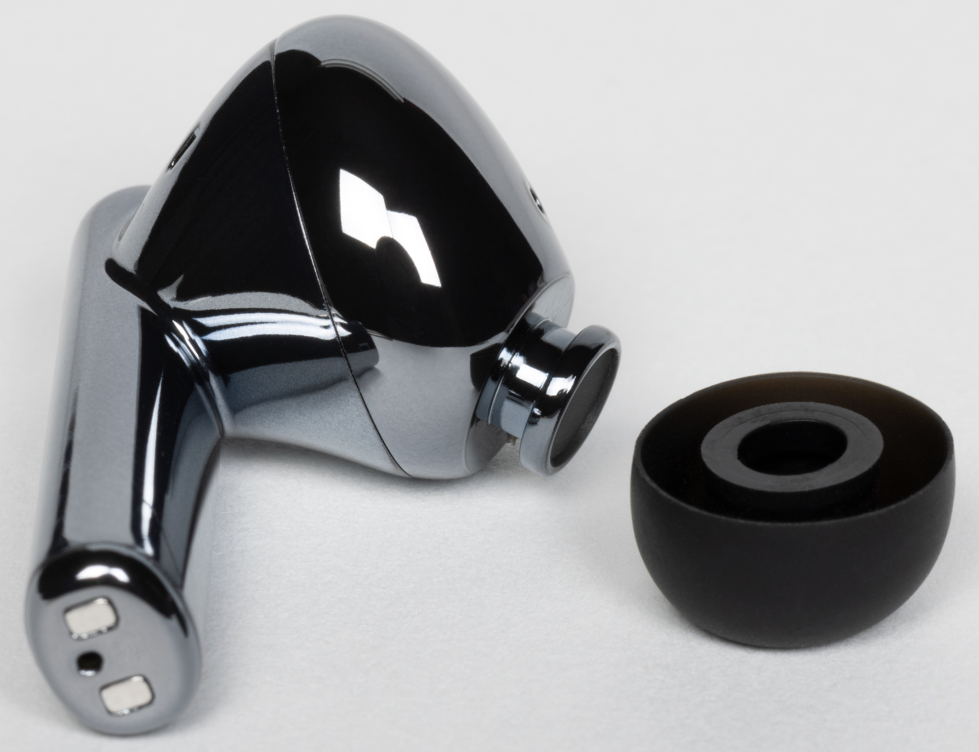 Также вполне вероятно, что оно используется для сброса излишков давления при работе динамического драйвера. Внутри размещена сеточка, которая защитит от попадания загрязнений внутрь корпуса.