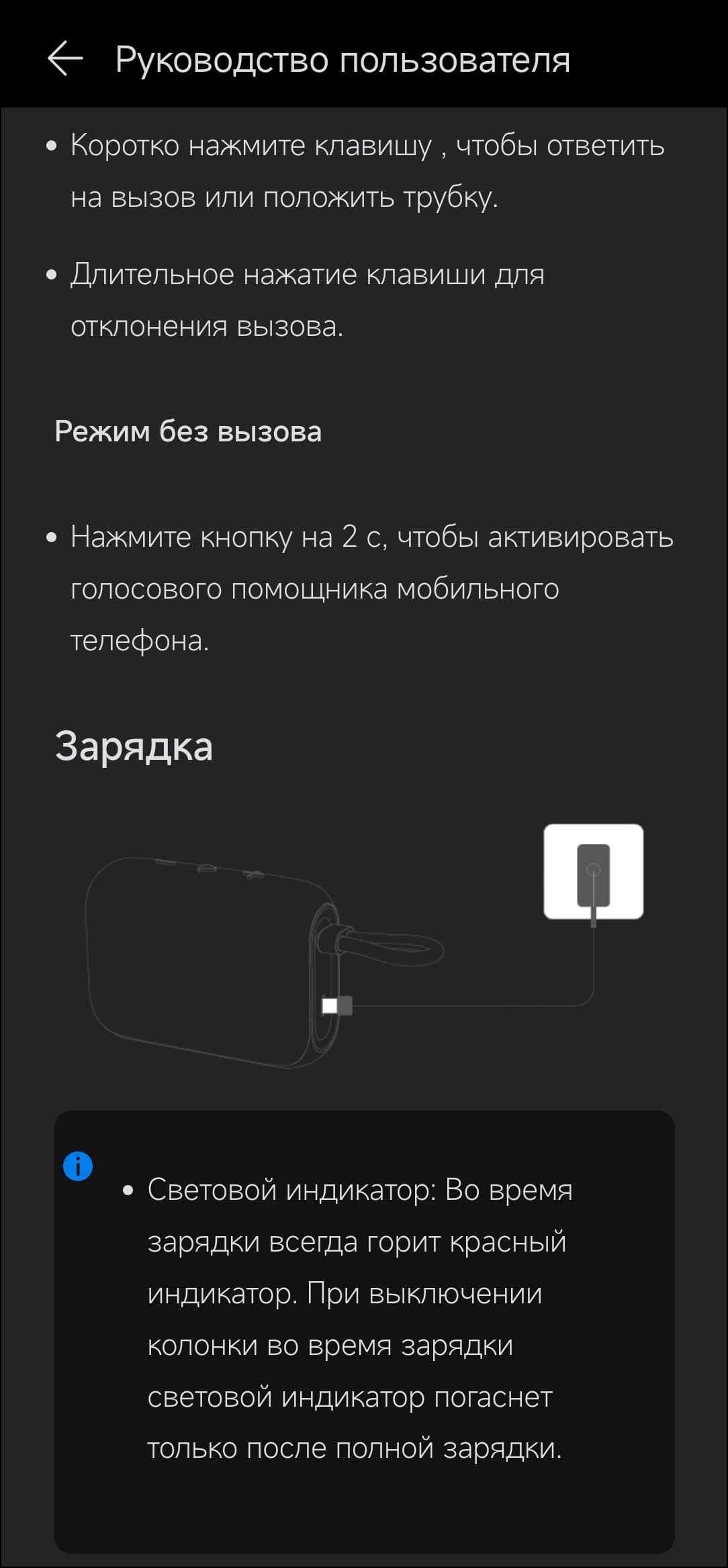 Среди интересных дополнительных возможностей Honor Choice MusicBox M1 в первую очередь, конечно, стоит отметить возможность принимать звонки — в ней есть микрофон. Во время звонка на телефон колонка издает более-менее приятное «тирлинь-тирлинь», на вызов можно ответить клавишей воспроизведения — и немного поговорить с кем-нибудь. Но именно «немного», потому что качество передачи речи у микрофона далеко не самое высокое, плюс приходится повышать голос даже в помещении, не говоря уж про улицу. В общем, быстро ответить на звонок и сказать пару слов точно можно, а для большего явно лучше использовать гарнитуру, например.