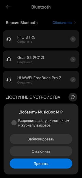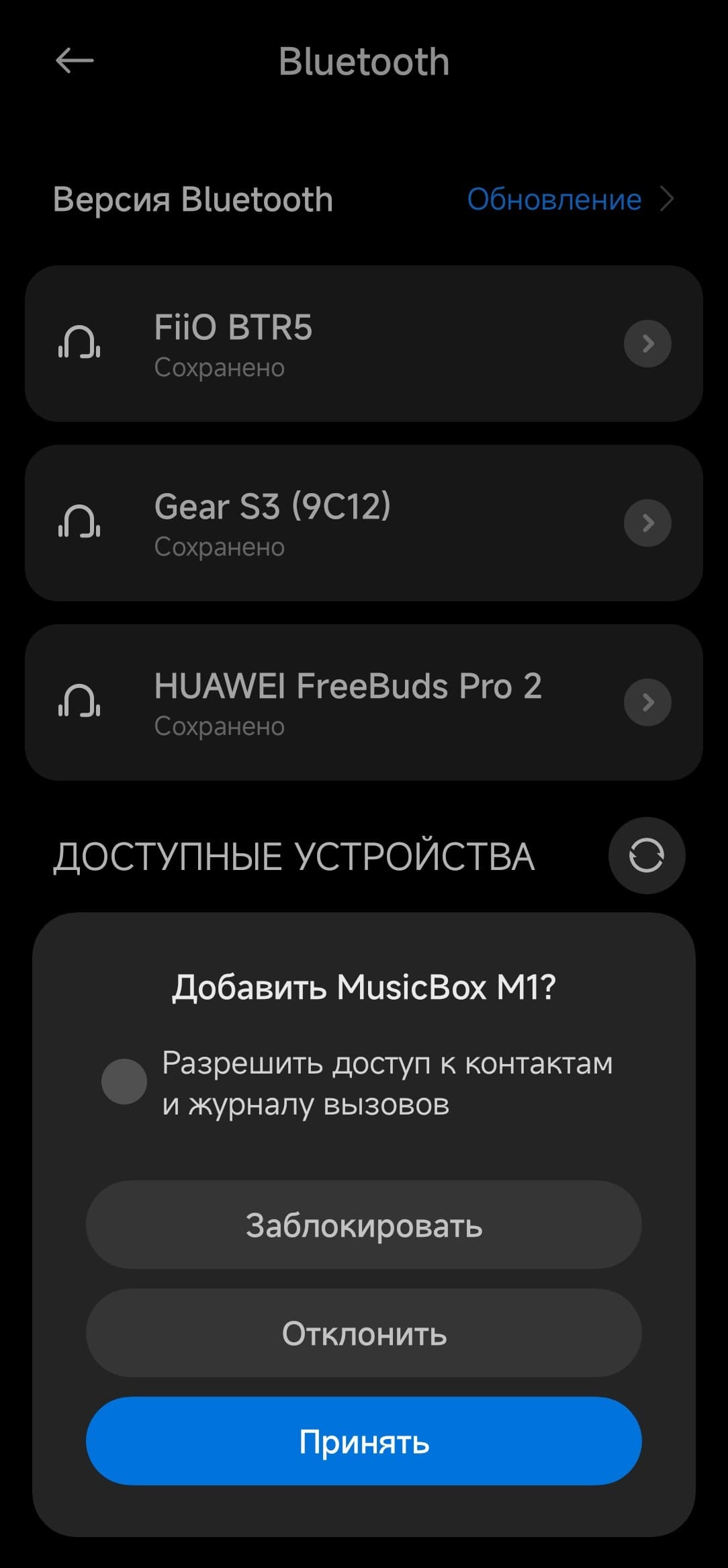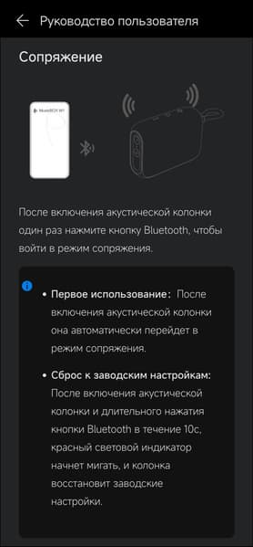 Процесс Bluetooth-сопряжения запускается с помощью специальной кнопки, которую мы видели чуть выше. После нажатия колонка начинает издавать своеобразные пульсирующие звуки, сигнализирующие о том, что процесс запущен. Счастливые обладатели смартфонов Honor с прошивкой Magic UI 6.0 и выше при запуске сопряжения сразу увидят окно установки связи, остальным придется пройти в соответствующее меню. Ну а там всё как всегда просто: находим устройство в списке доступных и подключаем.