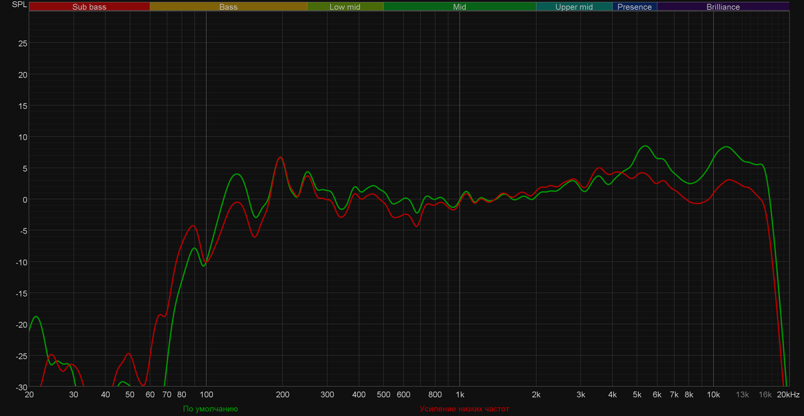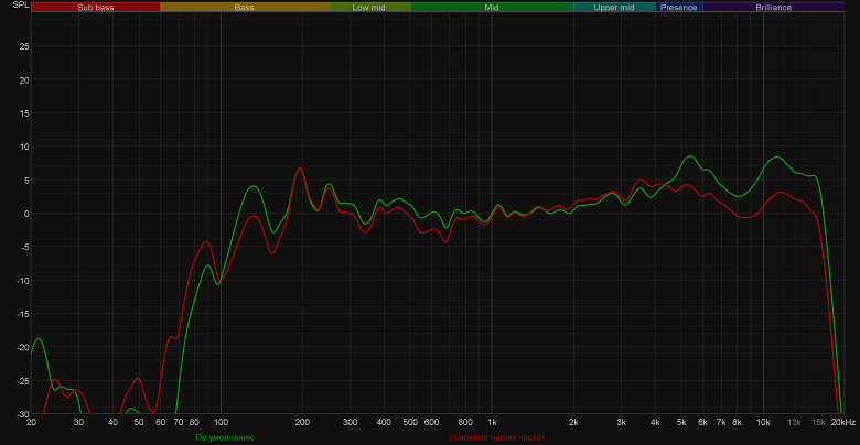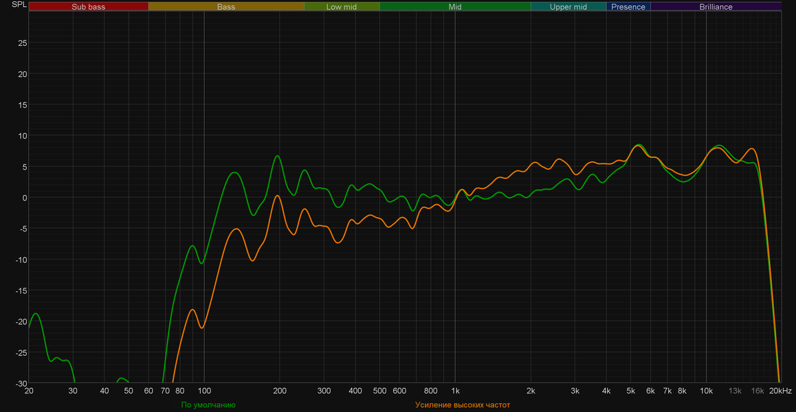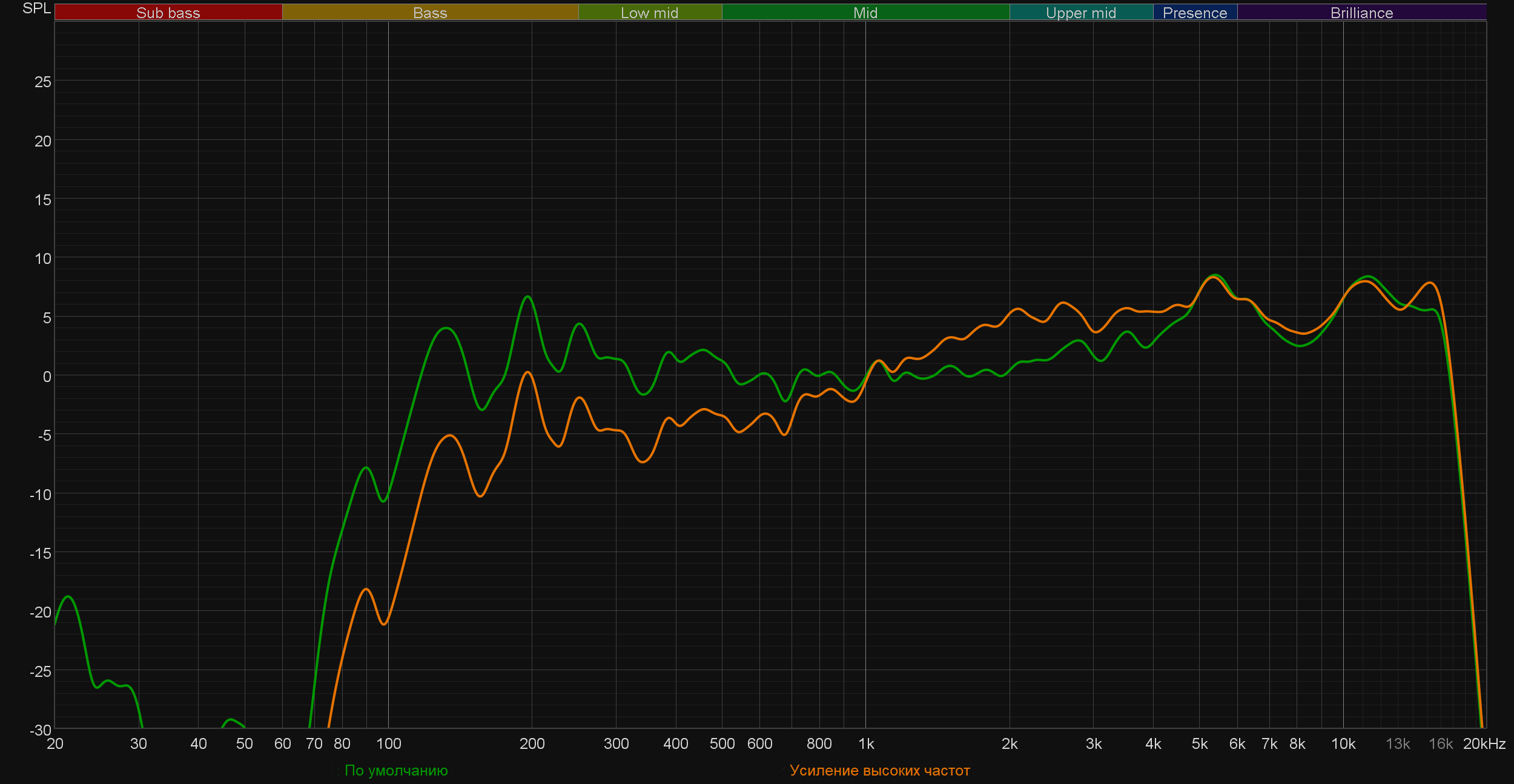 «Усиление высоких частот» тоже работает своеобразно — уводит назад НЧ-регистр и делает акцент на верхней середине. В общем, эквалайзер, конечно, работает... но реальных сценариев его использования практически нет.