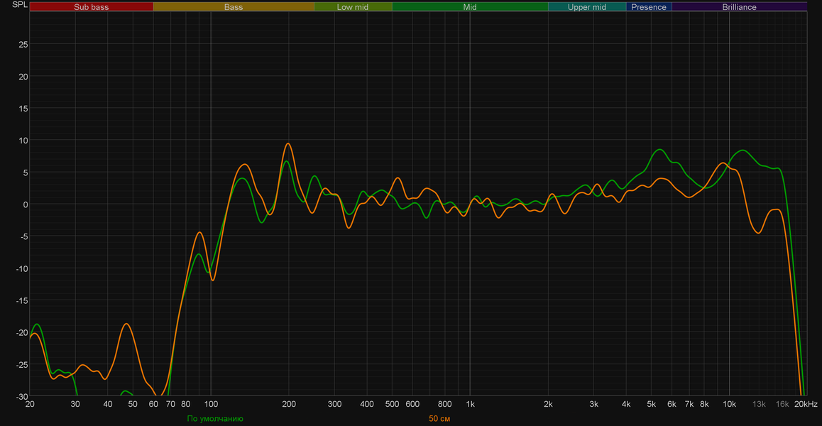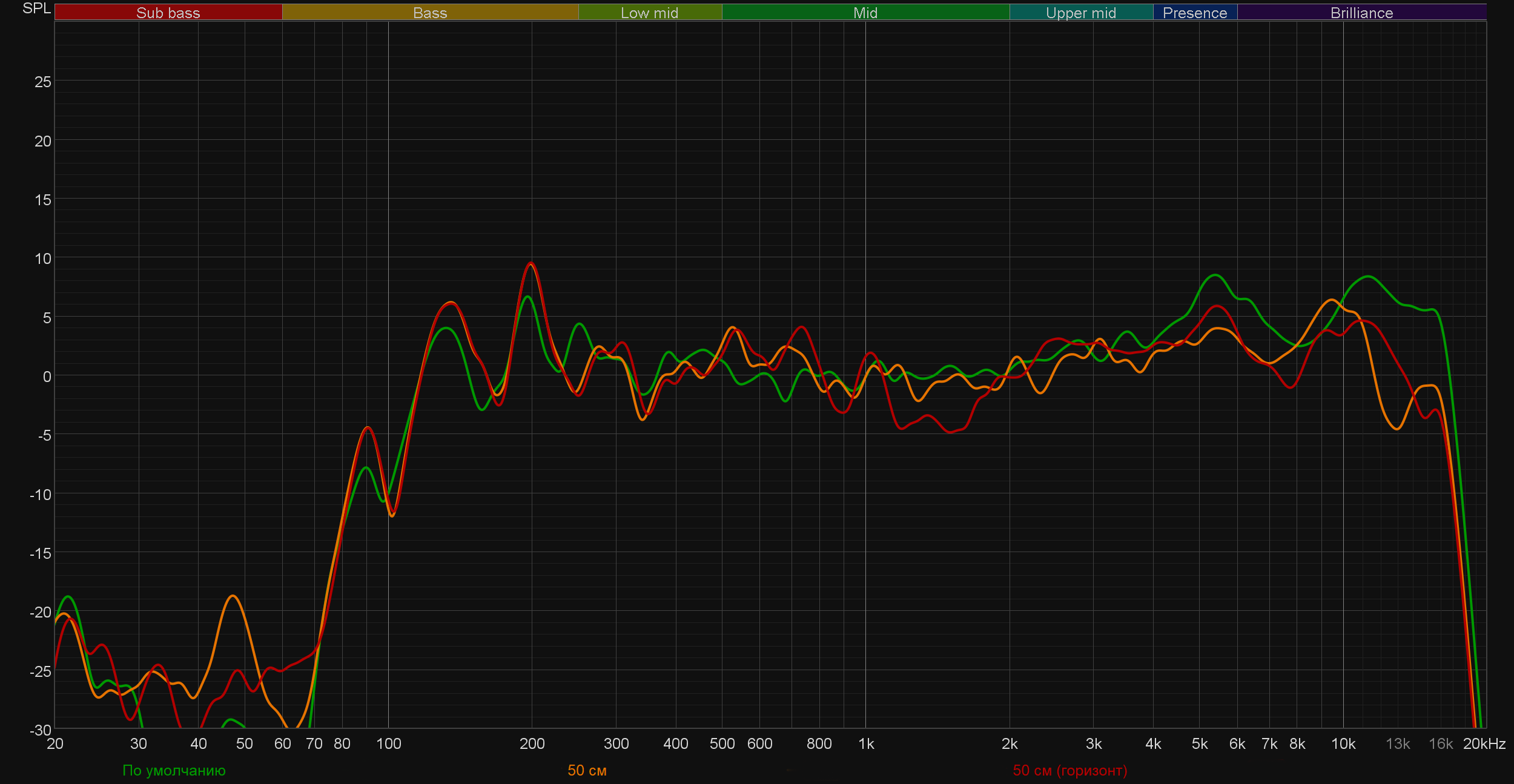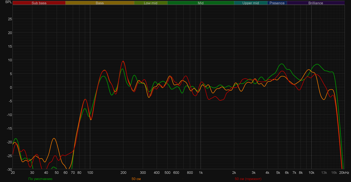 Подъем микрофона выше колонки примерно на полметра тоже не привел ни к каким серьезным изменениям в звучании.