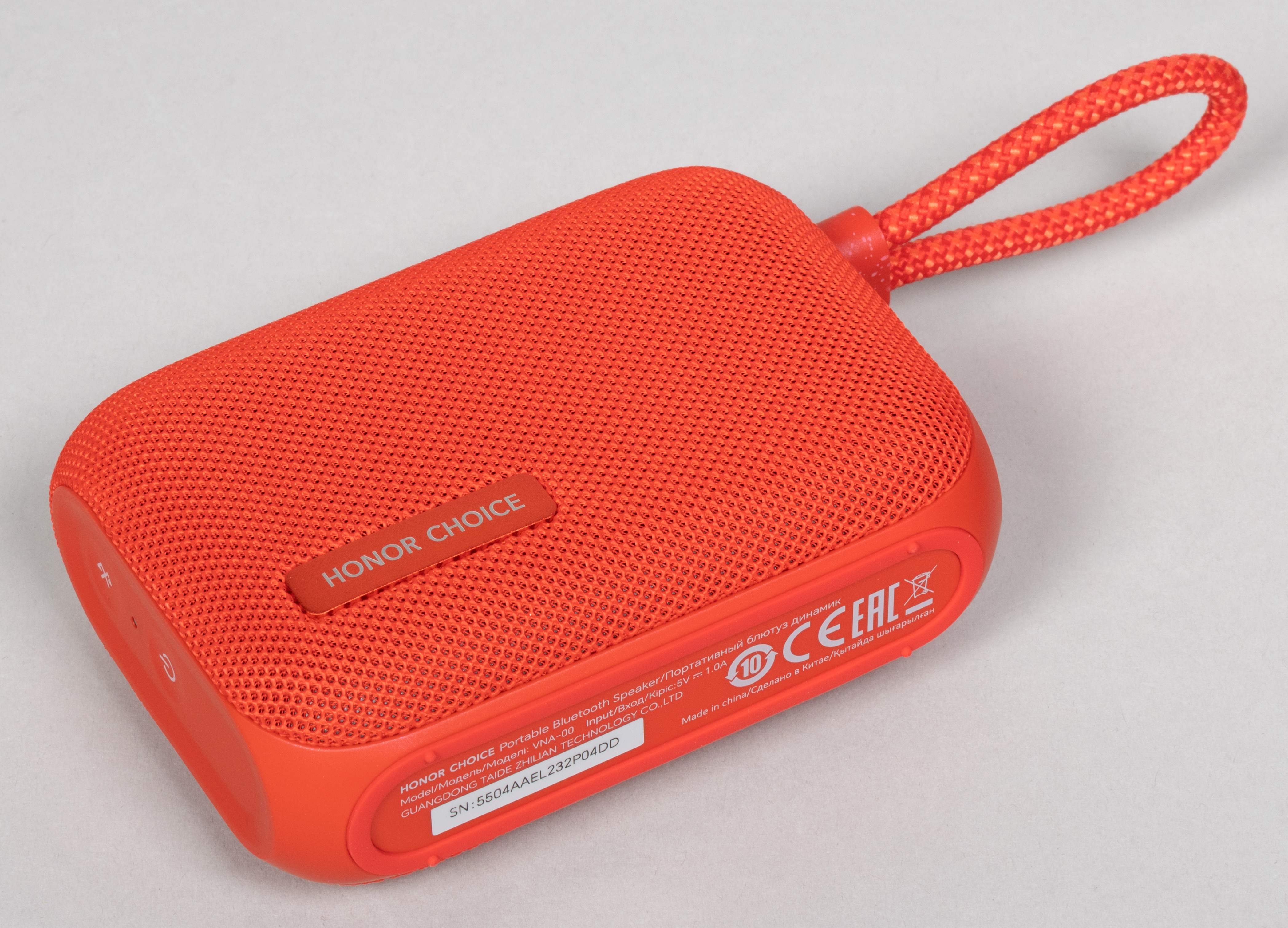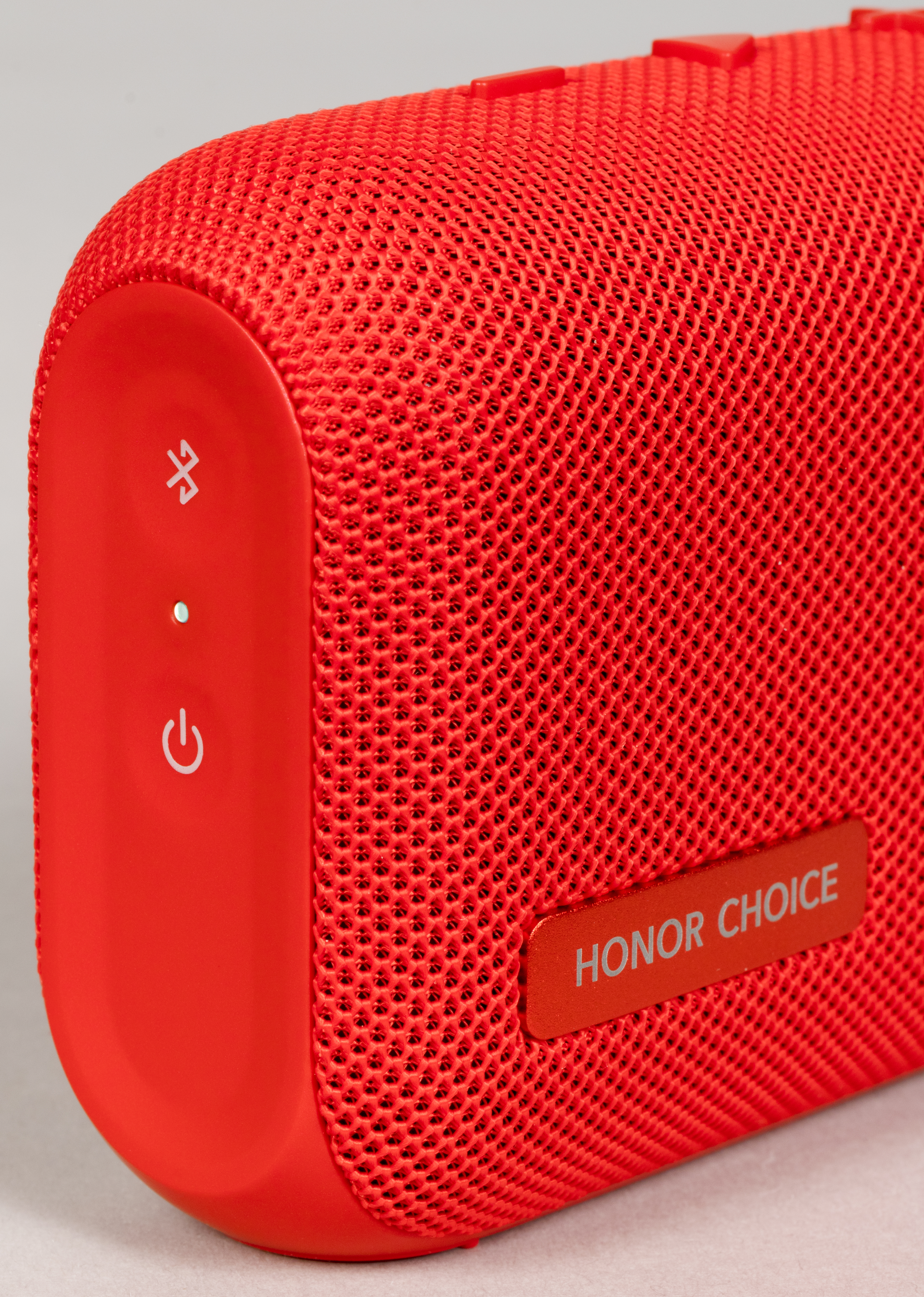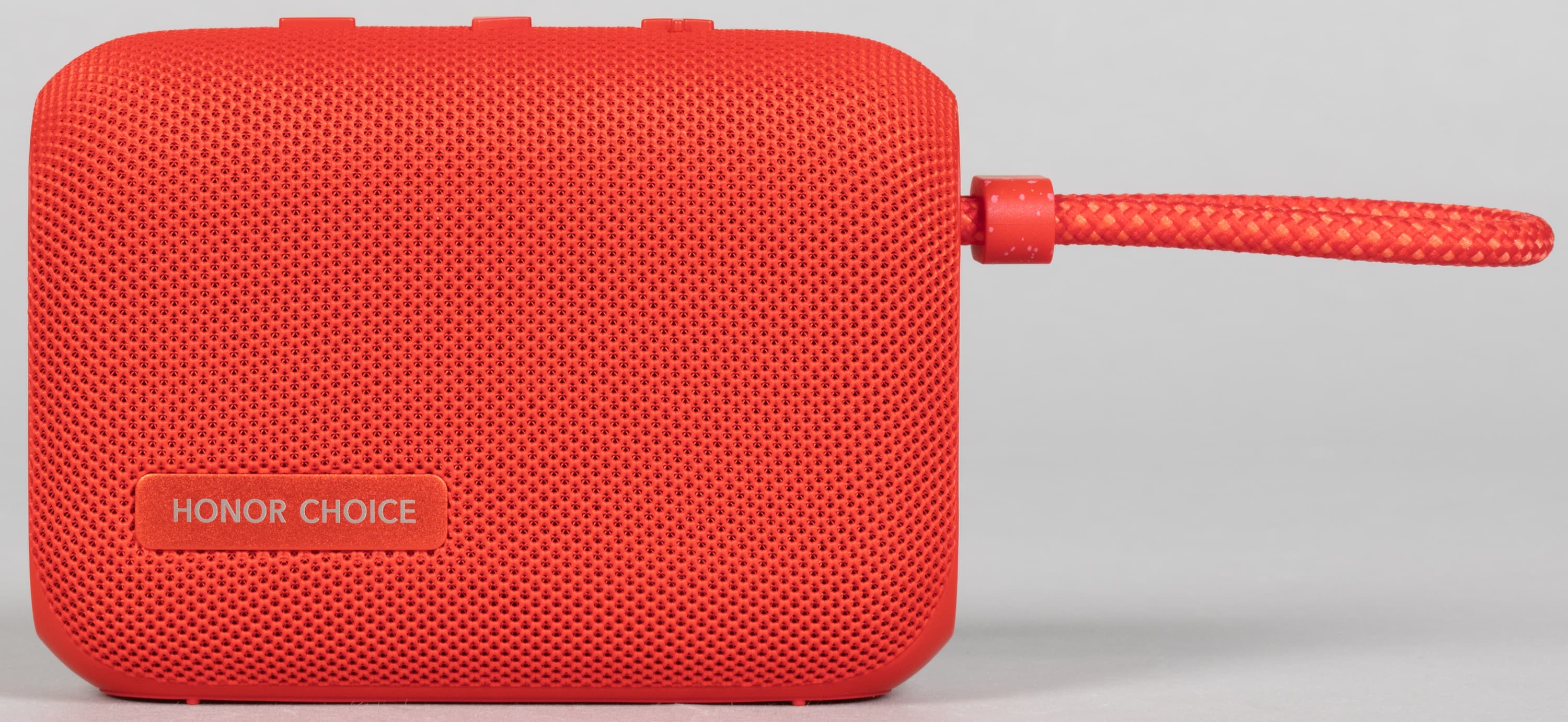 Колонка совсем-совсем компактная — 105×78×43 мм. Благодаря корпусу без острых углов она неплохо размещается даже в кармане брюк, не говоря уж про сумки или рюкзаки. Honor Choice MusicBox M1 доступна в двух цветах — красном и черном. У нас на тестировании был более яркий и заметный первый вариант.