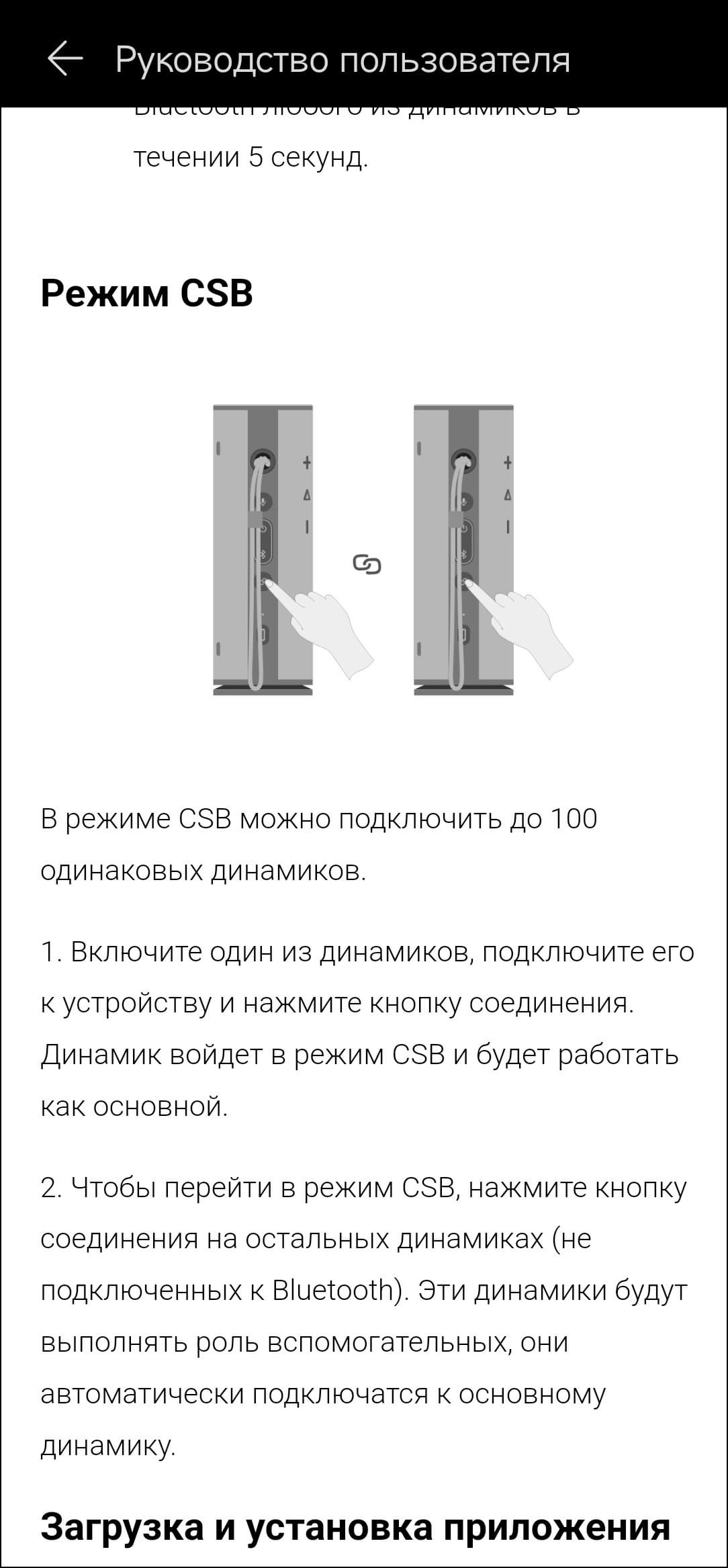 Производитель предусмотрел возможность создания стереопары — для этого на боковой панели есть специальная кнопка, а вот мультипойнт не поддерживается. Зато всего к одному устройству можно подключить до сотни Honor Choice Portable Speaker Pro — есть сомнения, что эта возможность реально кому-то пригодится, но она есть.