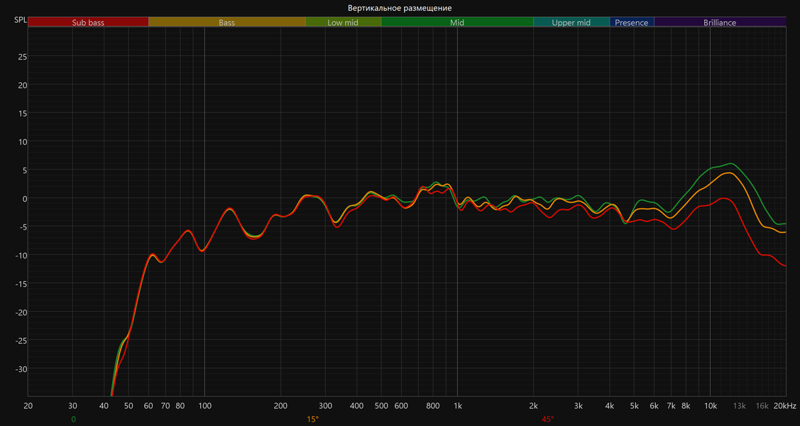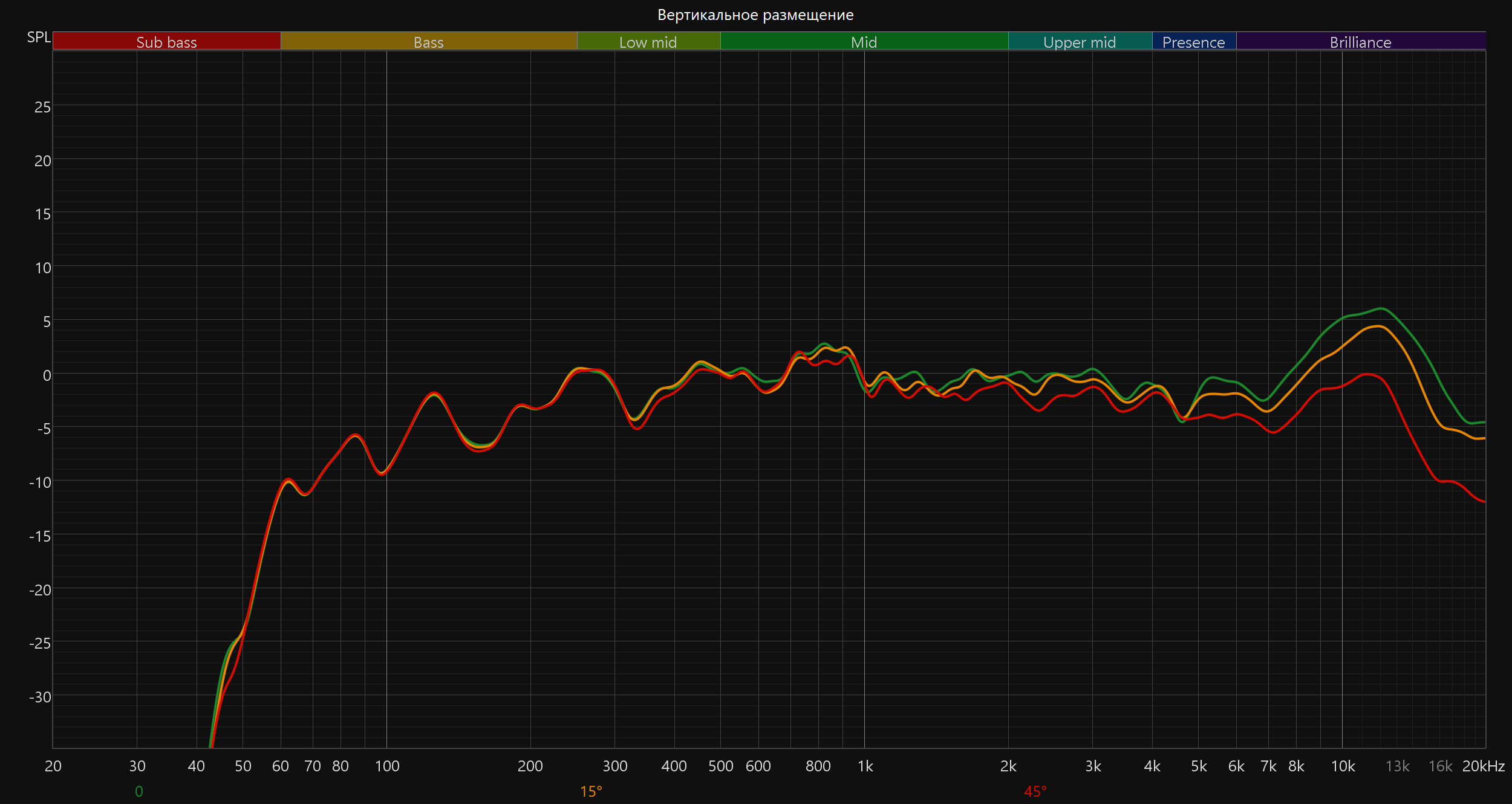 При вертикальном размещении колонки с горизонтальной дисперсией звука проблем предсказуемо нет — даже если основательно отвернуть колонку от слушателя, «потеряется» лишь небольшая часть ВЧ-диапазона.